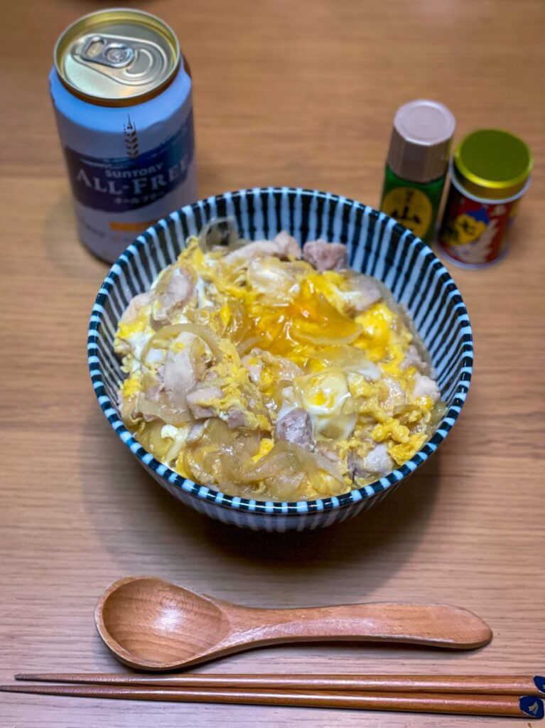 18:00 親子丼、アボカドサラダ、鶏ハム、キャベツ、鶏もも西京焼き