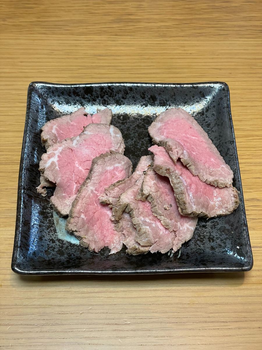 8:00 プロテインスムージー、ローストビーフサラダ、納豆
