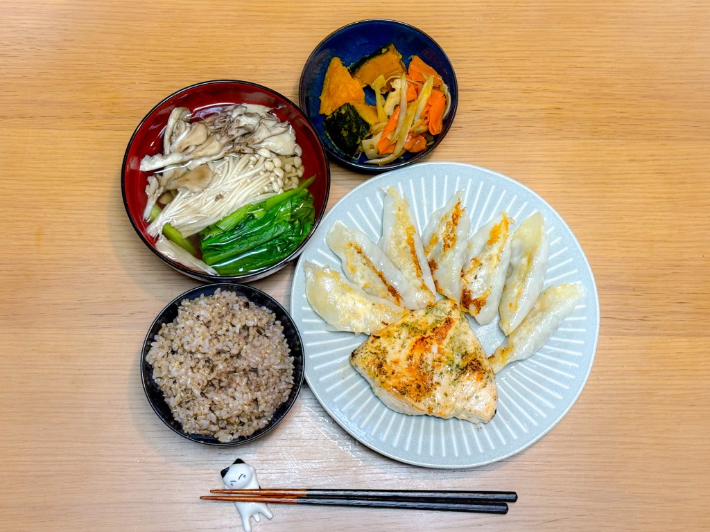 18:00 鮭西京焼き、きんぴら、もずく、白菜と小松菜の味噌汁、玄米ご飯