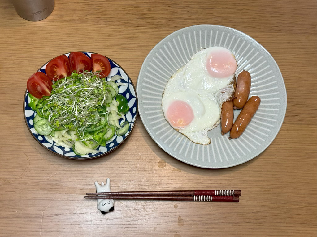 8:45 オムレツ、サラダ、めかぶ、玄米ご飯