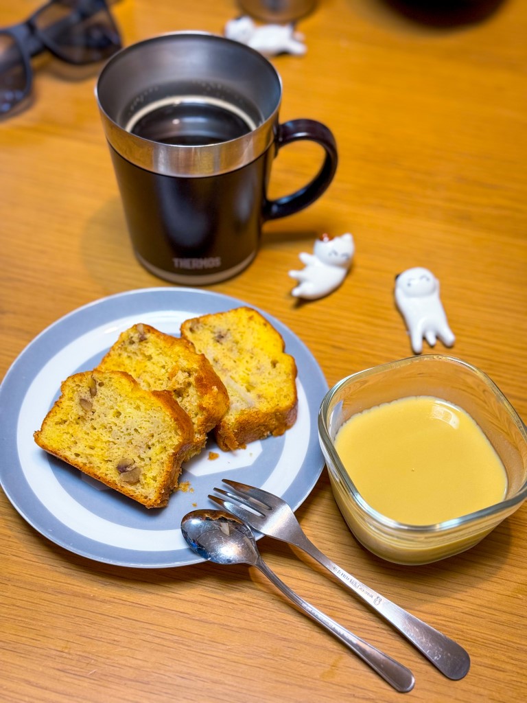 15:00 バナナくるみパウンドケーキ、プリン