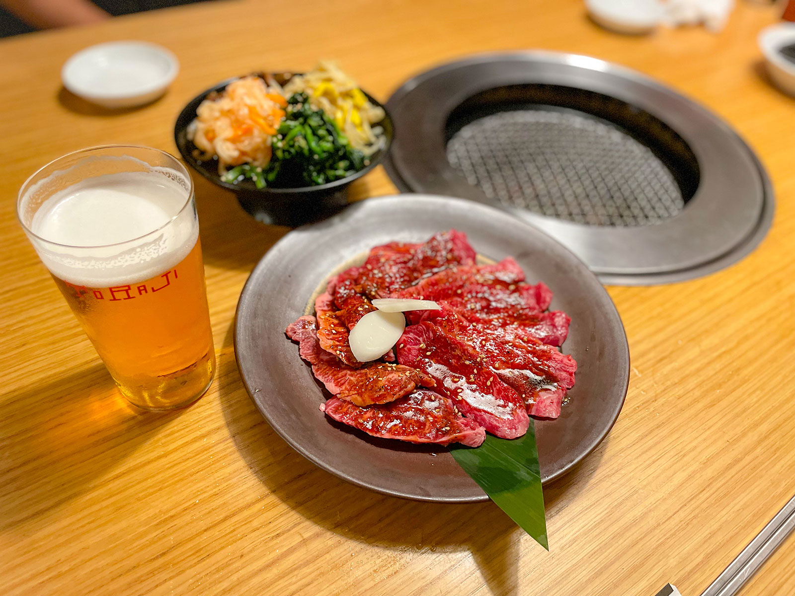 17:00 生ビール、鶏の山賊焼、信州サーモン丼
