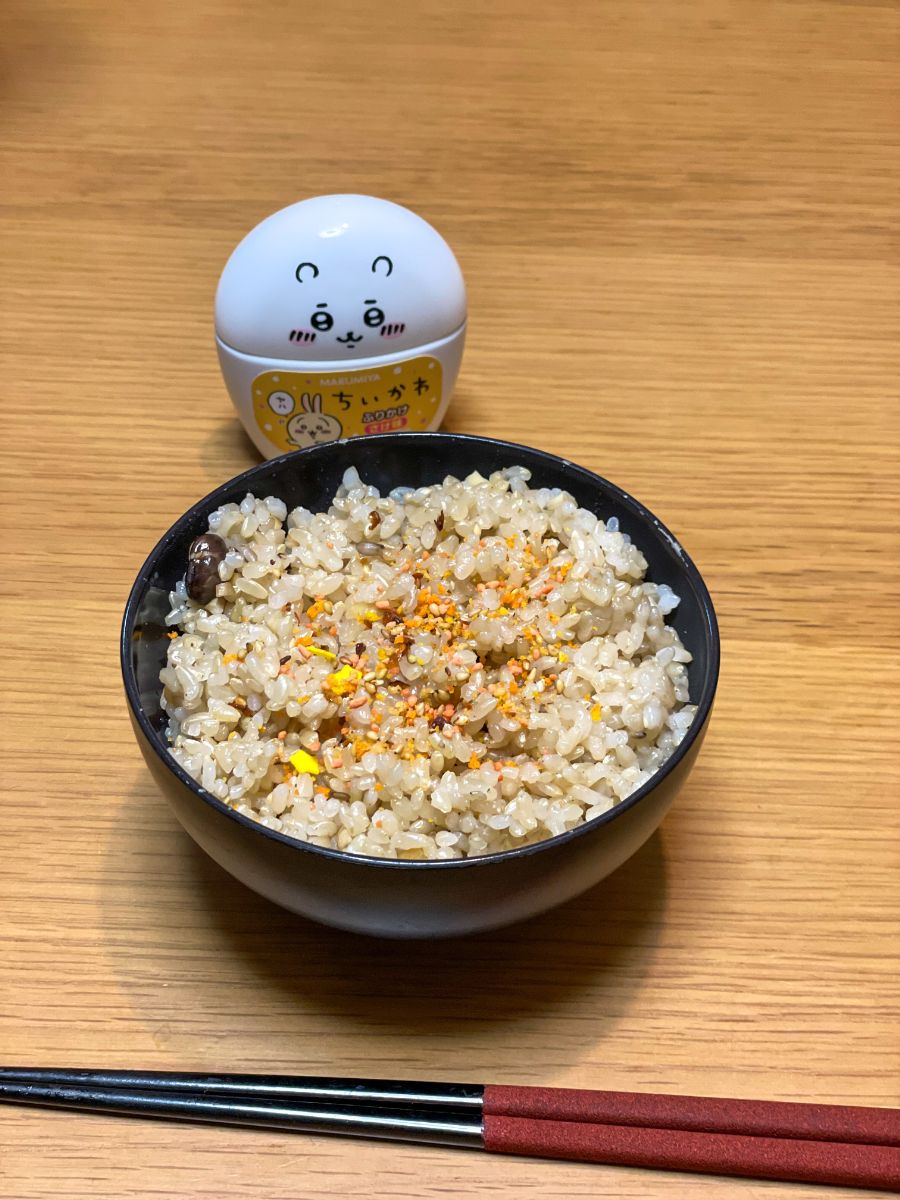 7:45 焼き鮭、ハムサラダ、温泉卵、野沢菜、ごはん、のり