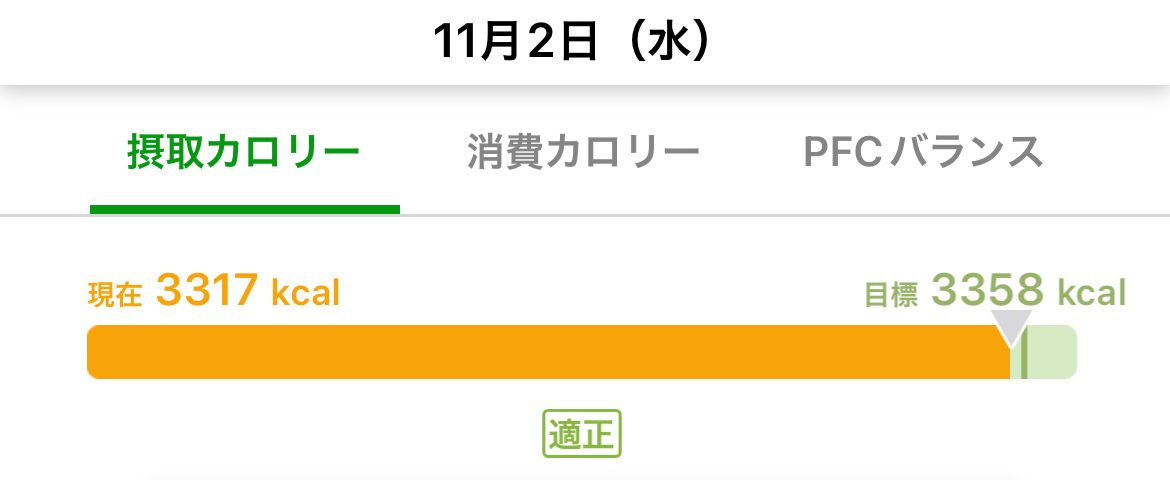| 摂取カロリー | たんぱく質 | 脂質 | 糖質(炭水化物) |