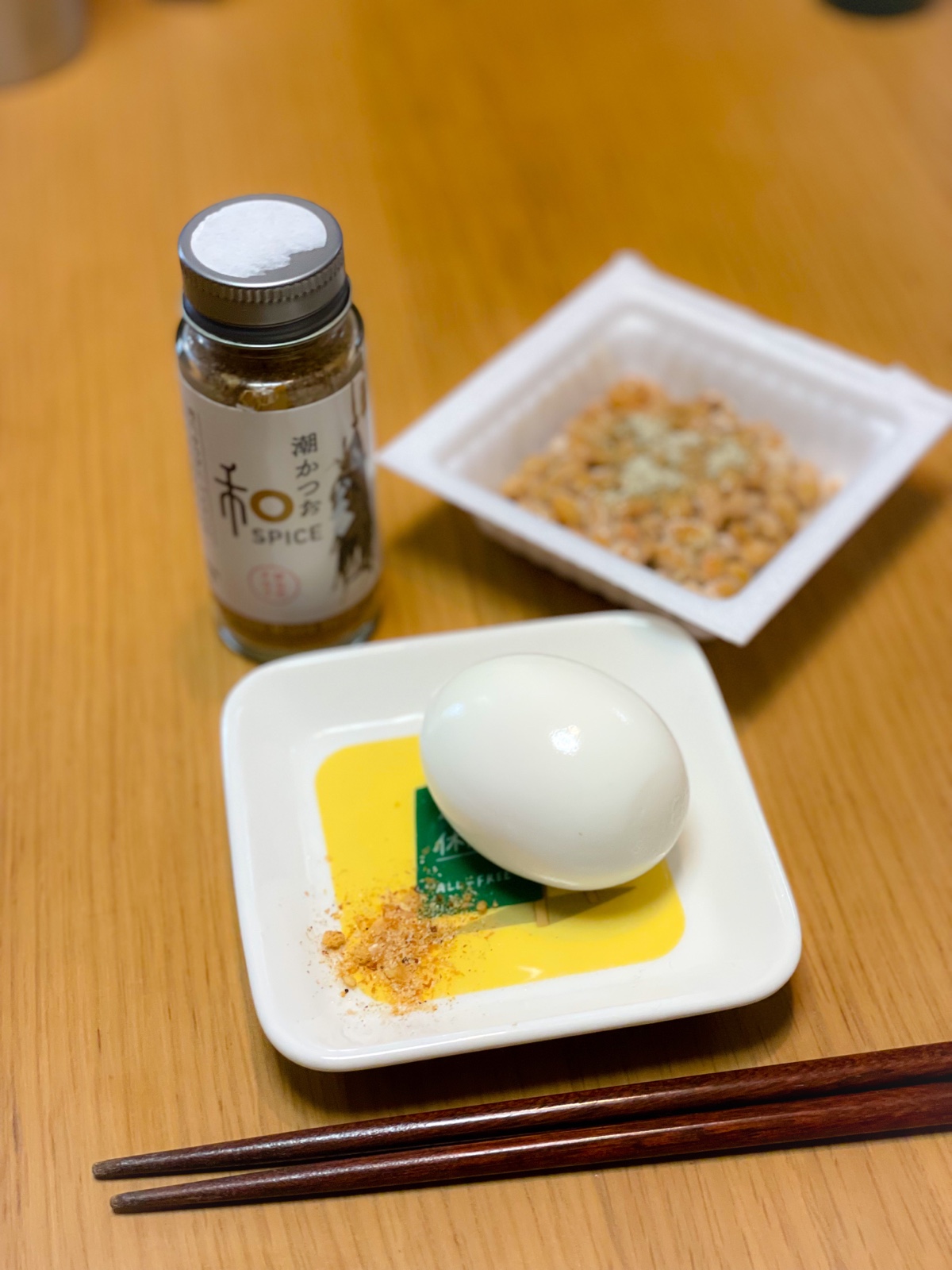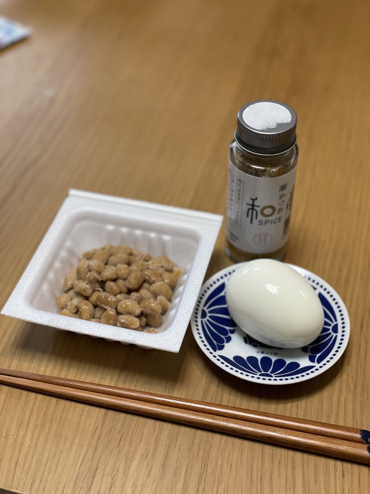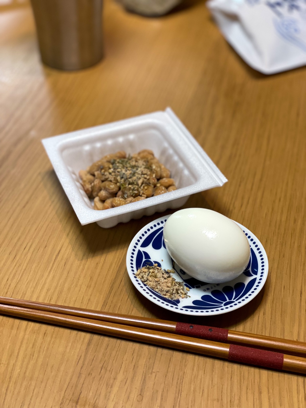 8:30 ゆで卵、納豆
