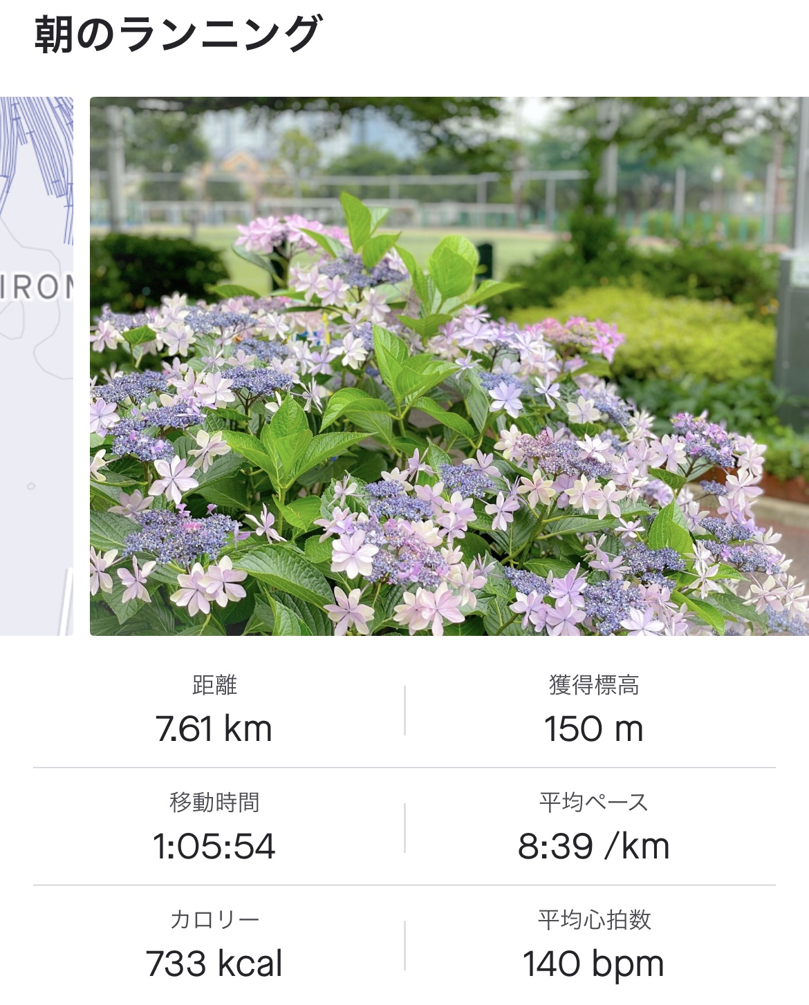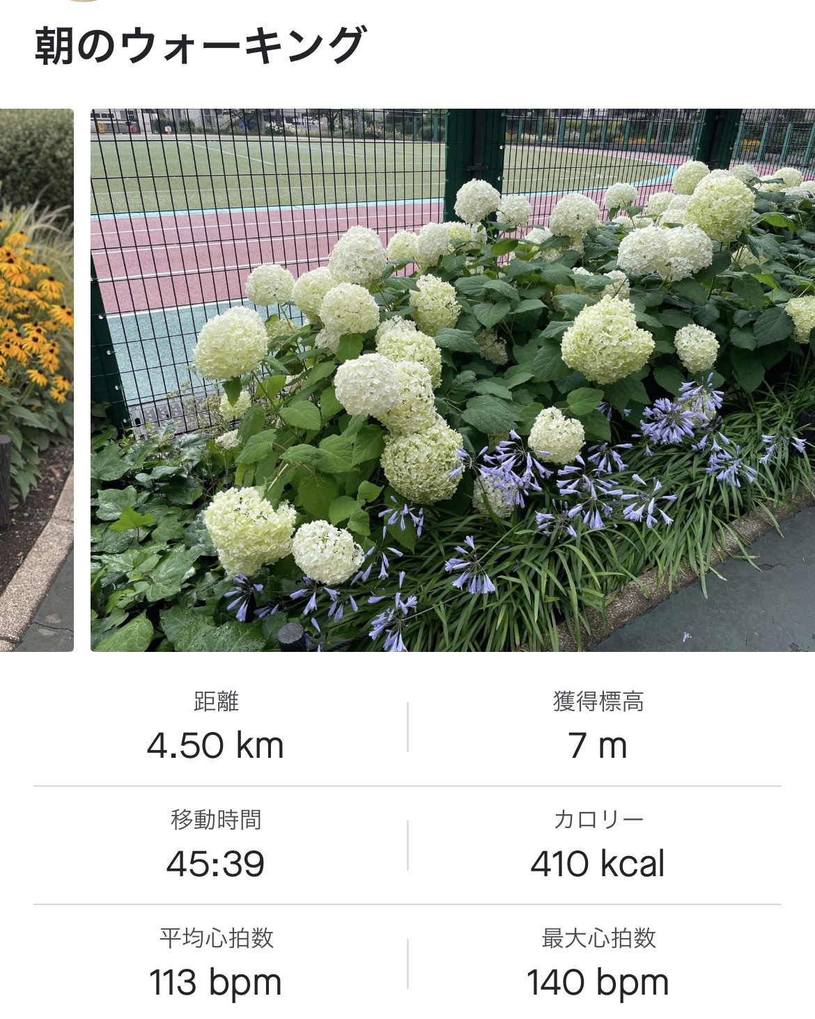 朝のウォーキング1時間弱。