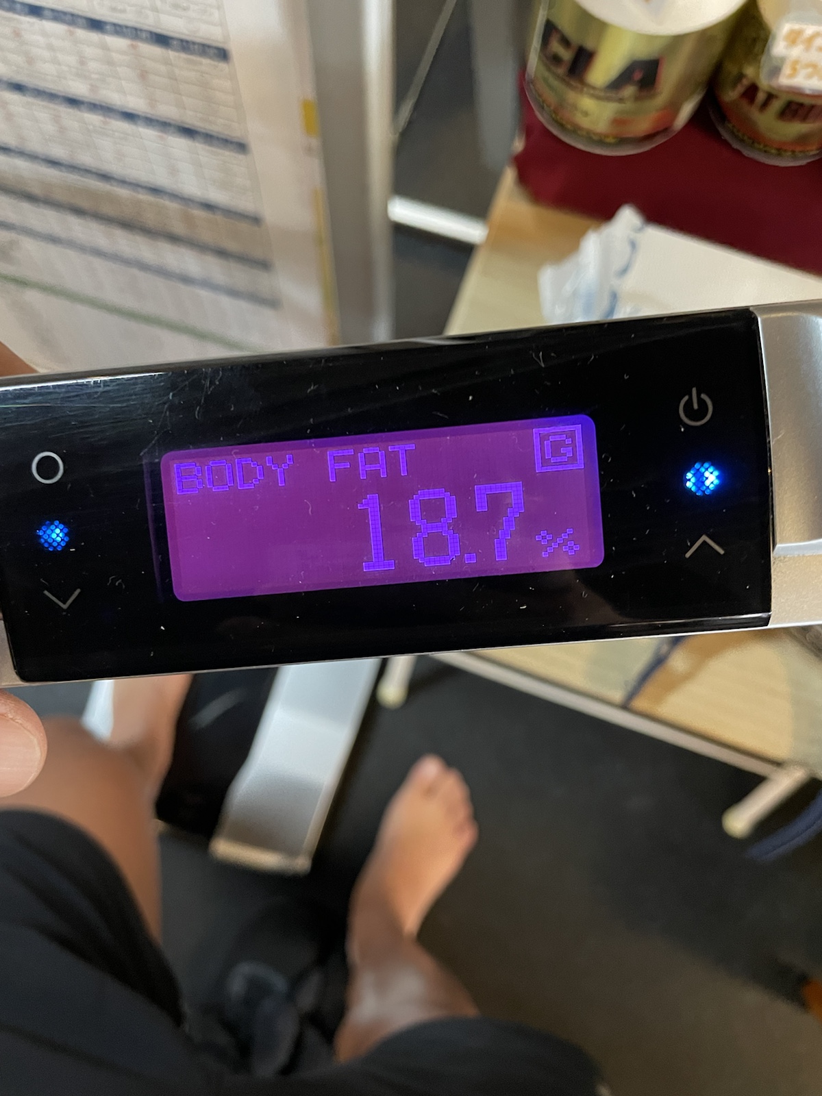 そして豆乳プロテインスムージーを飲んで、ジムで計測した結果。