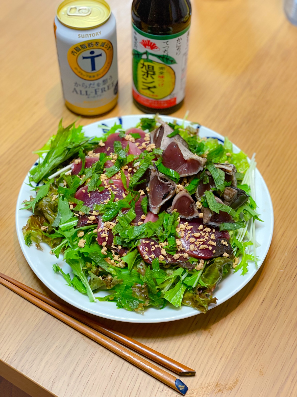 22:30 カツオサラダ、プロテイン豆乳割り