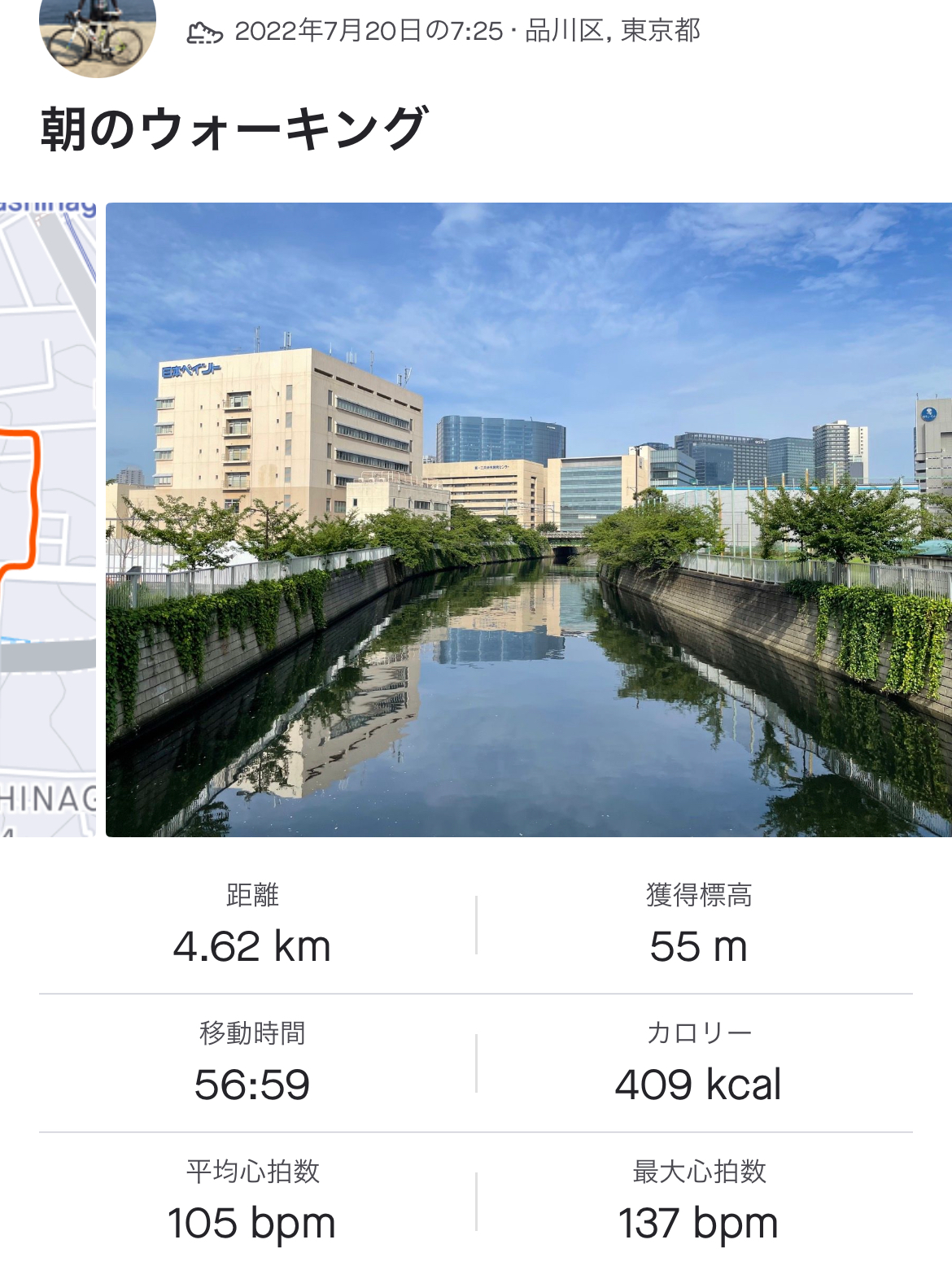 朝のウォーキングは45分。