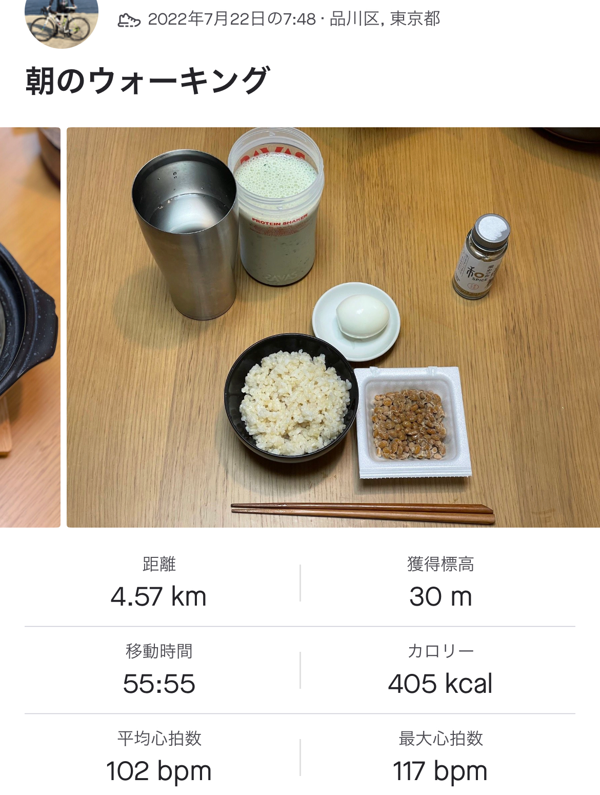7:00 豆乳プロテインスムージー、玄米ごはん、納豆、ゆで卵