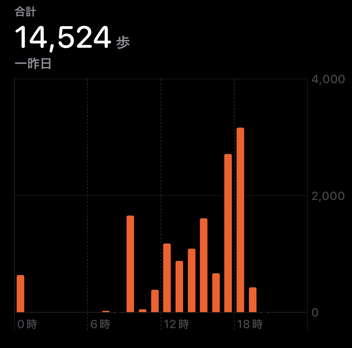そんなこんなで2万歩いくぞと息巻いていたのに14524歩っていう。