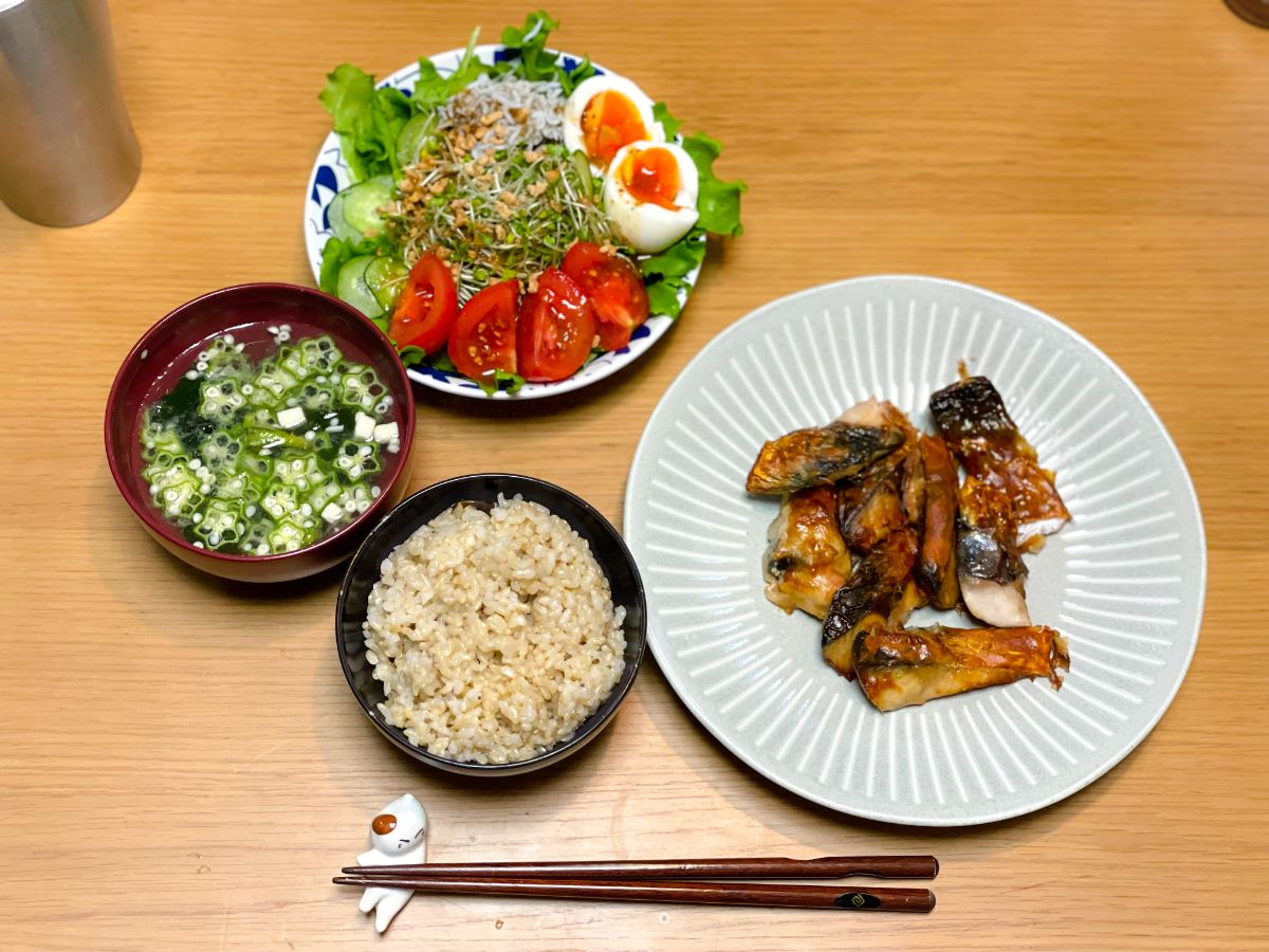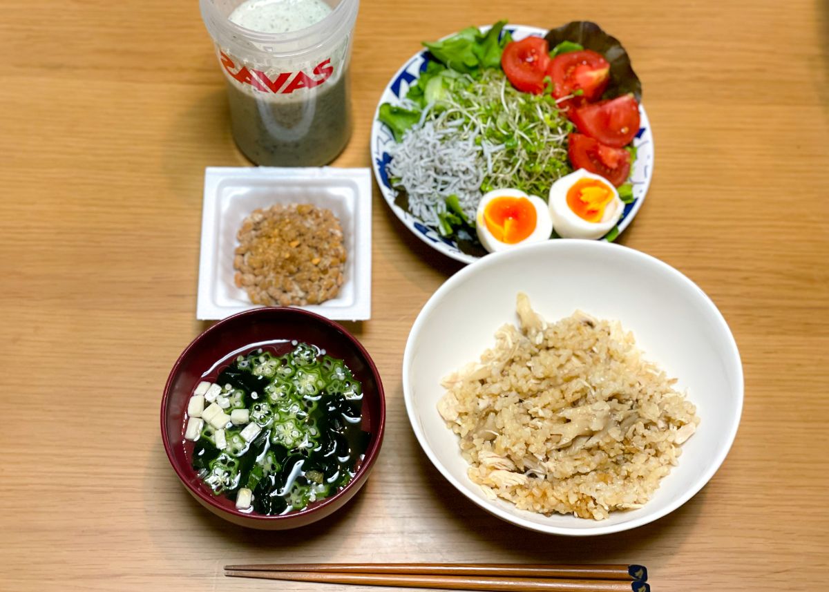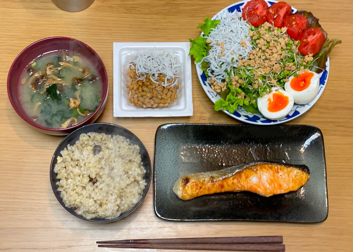 8:30 いつものスムージー、アジ開き、玄米ご飯、味噌汁、サラダ