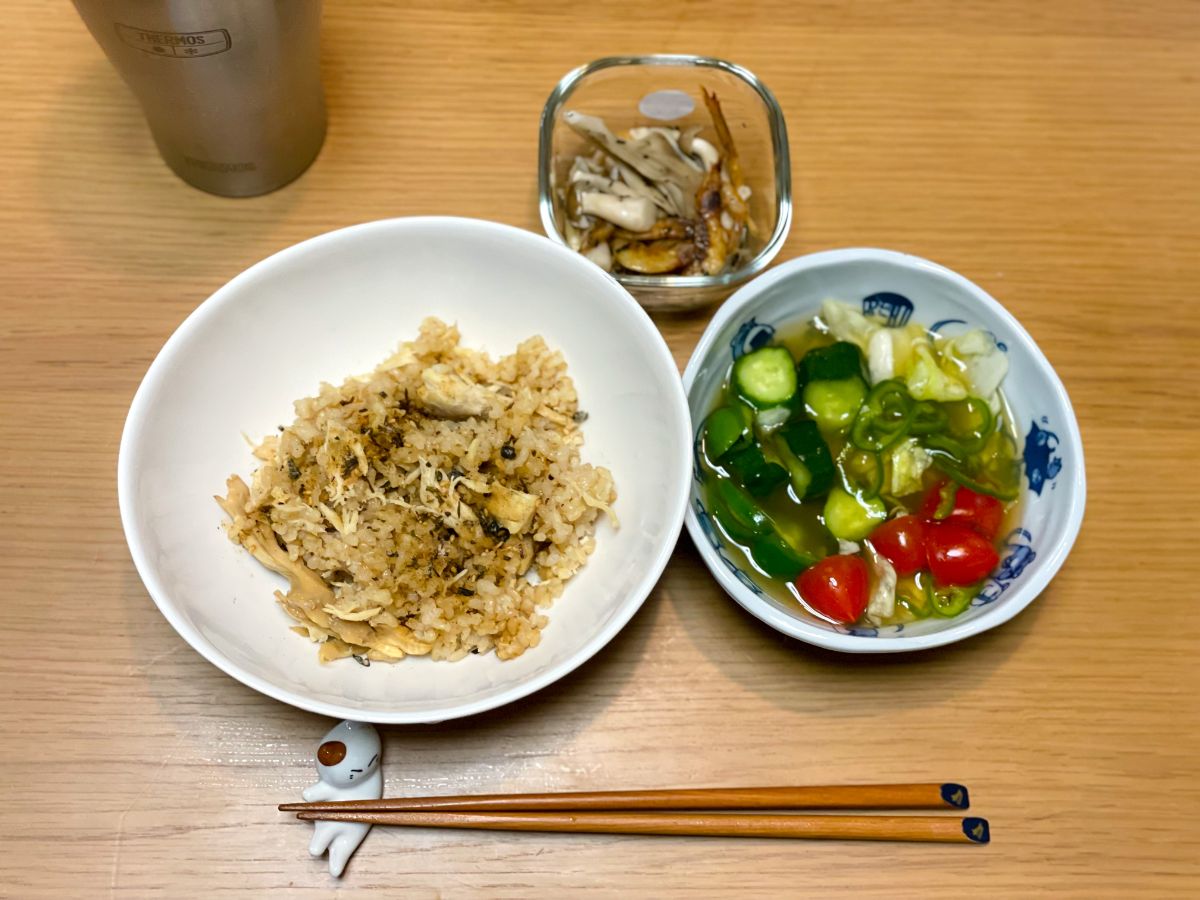 →お昼ごはんを2回に分けた。ランチで7割、15時頃に3割くらいのバランスにしてみた。満足感は持続するので、これはとてもよさそう。