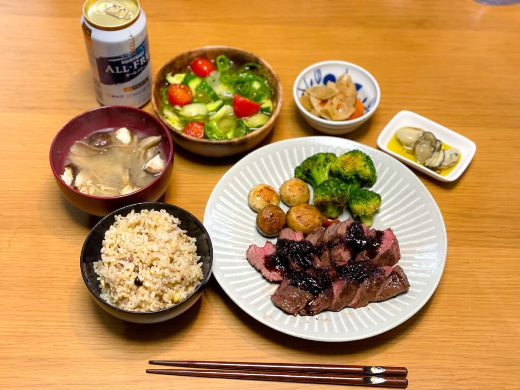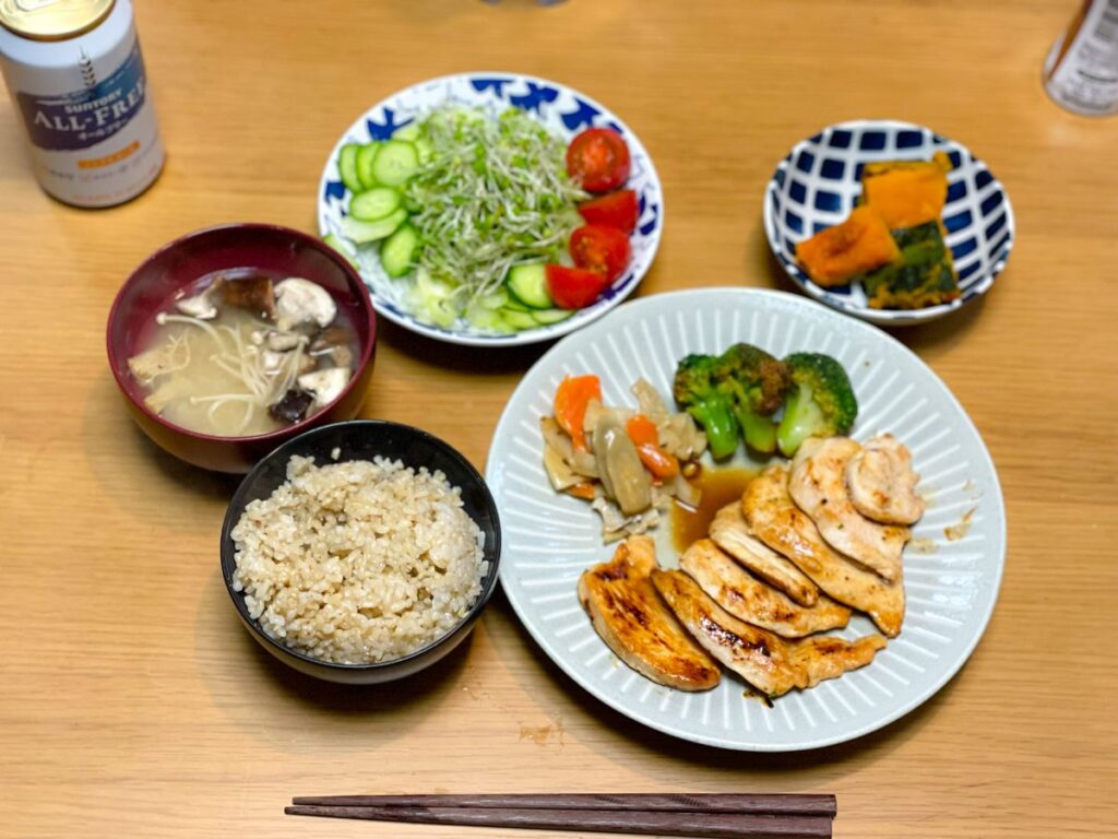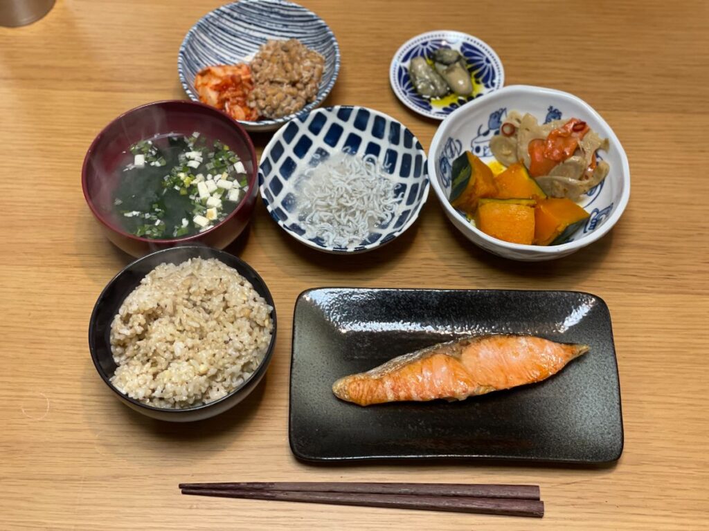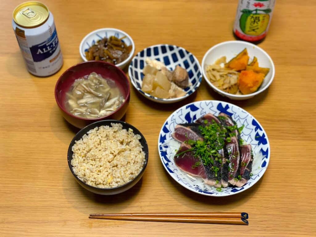 8:30 いつものスムージー、マグロ漬け丼、サラダ、ゆで卵、納豆キムチ、味噌汁