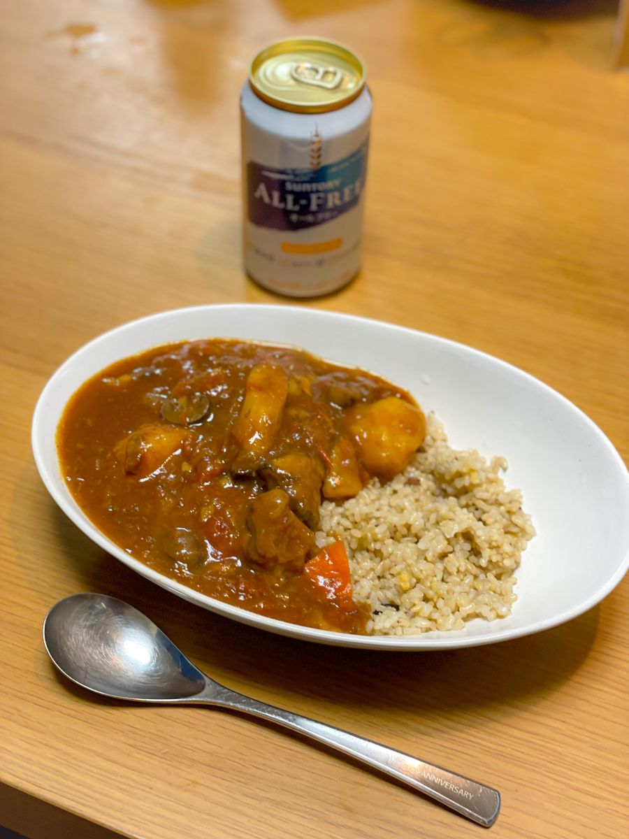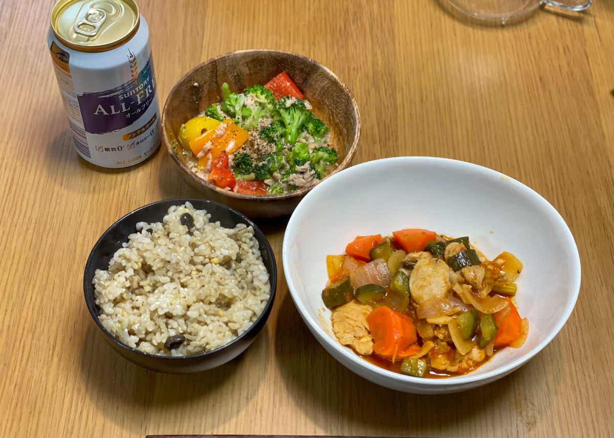 18:00 ピザ(マルゲリータ)、ジャンバラヤ、唐揚げ2個、チーズペンネ、ビール2杯、ハイボール2杯
