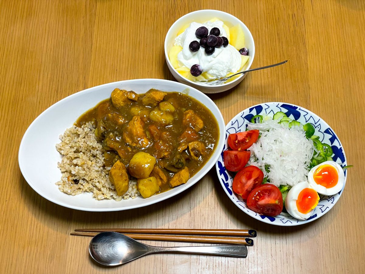 スムージーをやめました。もともと朝イチでプロテインを摂る目的だったので、いっそのことやめてしまおう、と。その代わりにヨーグルトとフルールを食べるようにしました。フルーツはりんごとブルーベリー。