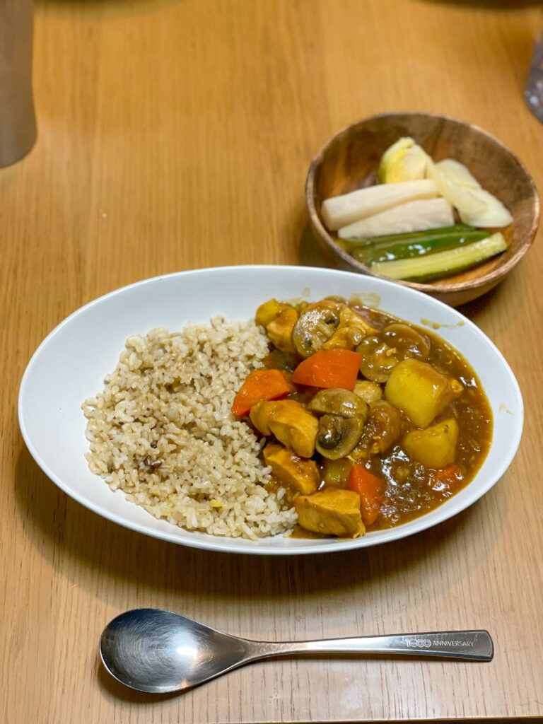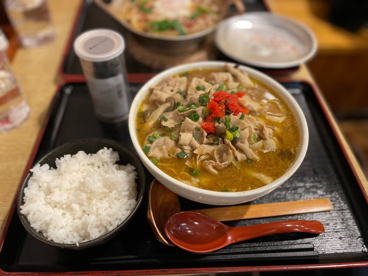 12:00 豚肉カレーうどん、ご飯