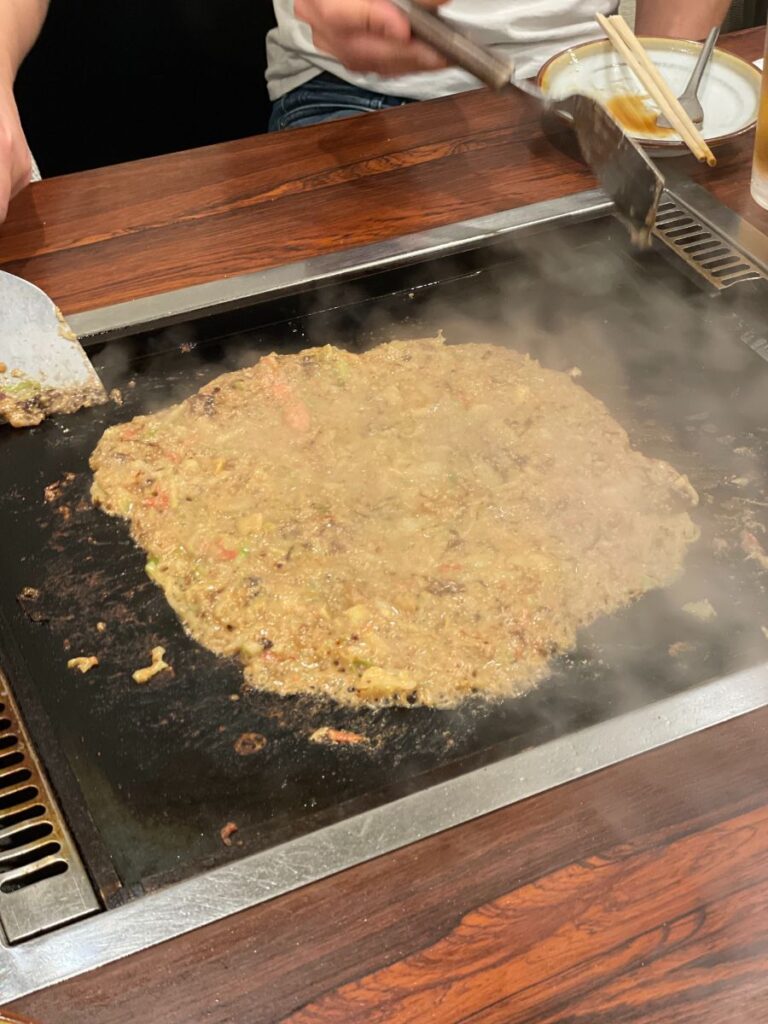 19:00 もんじゃ焼き、焼きそば(昼食いすぎてほとんど食ってない)