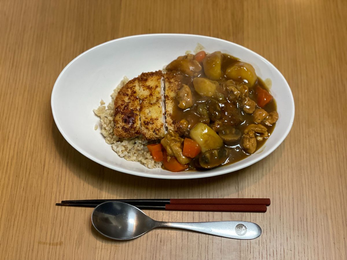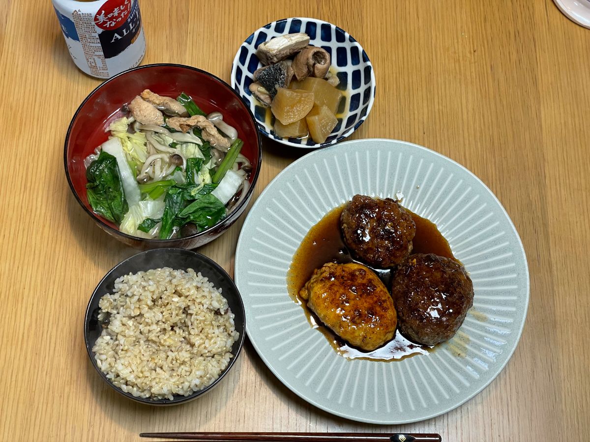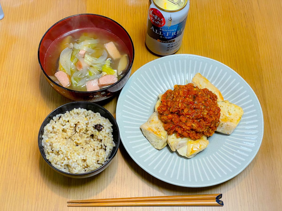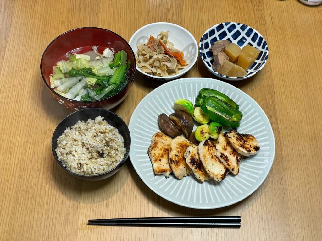 21:00 玄米ご飯、鮭香草焼き、白菜と小松菜の吸い物