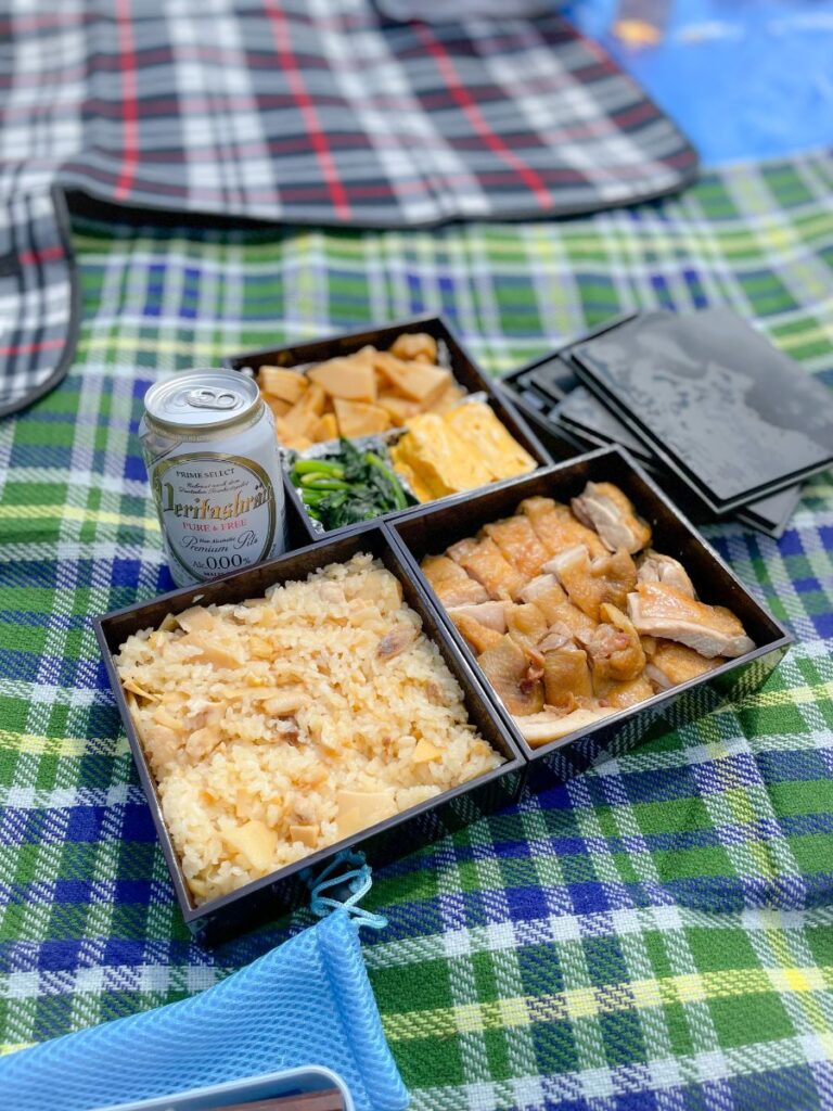 お花見に招かれてお出かけ。お弁当作って、川崎大師近くの公園へ。