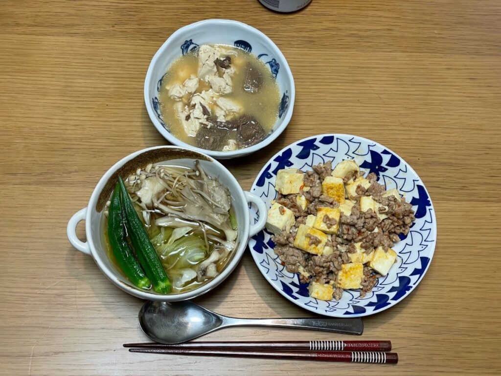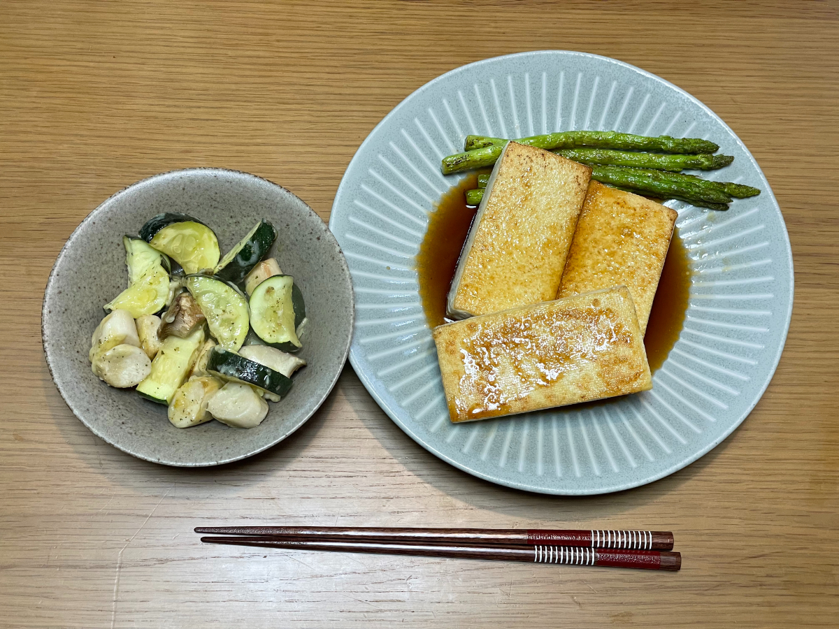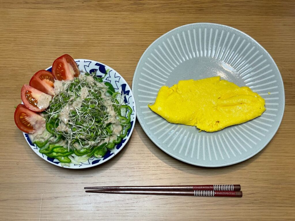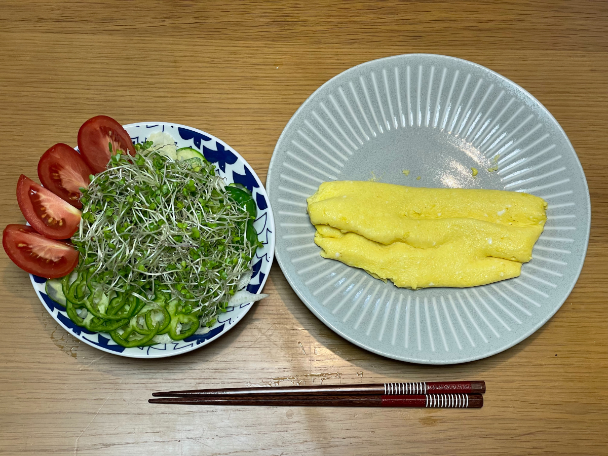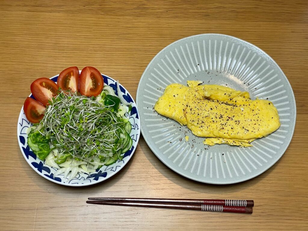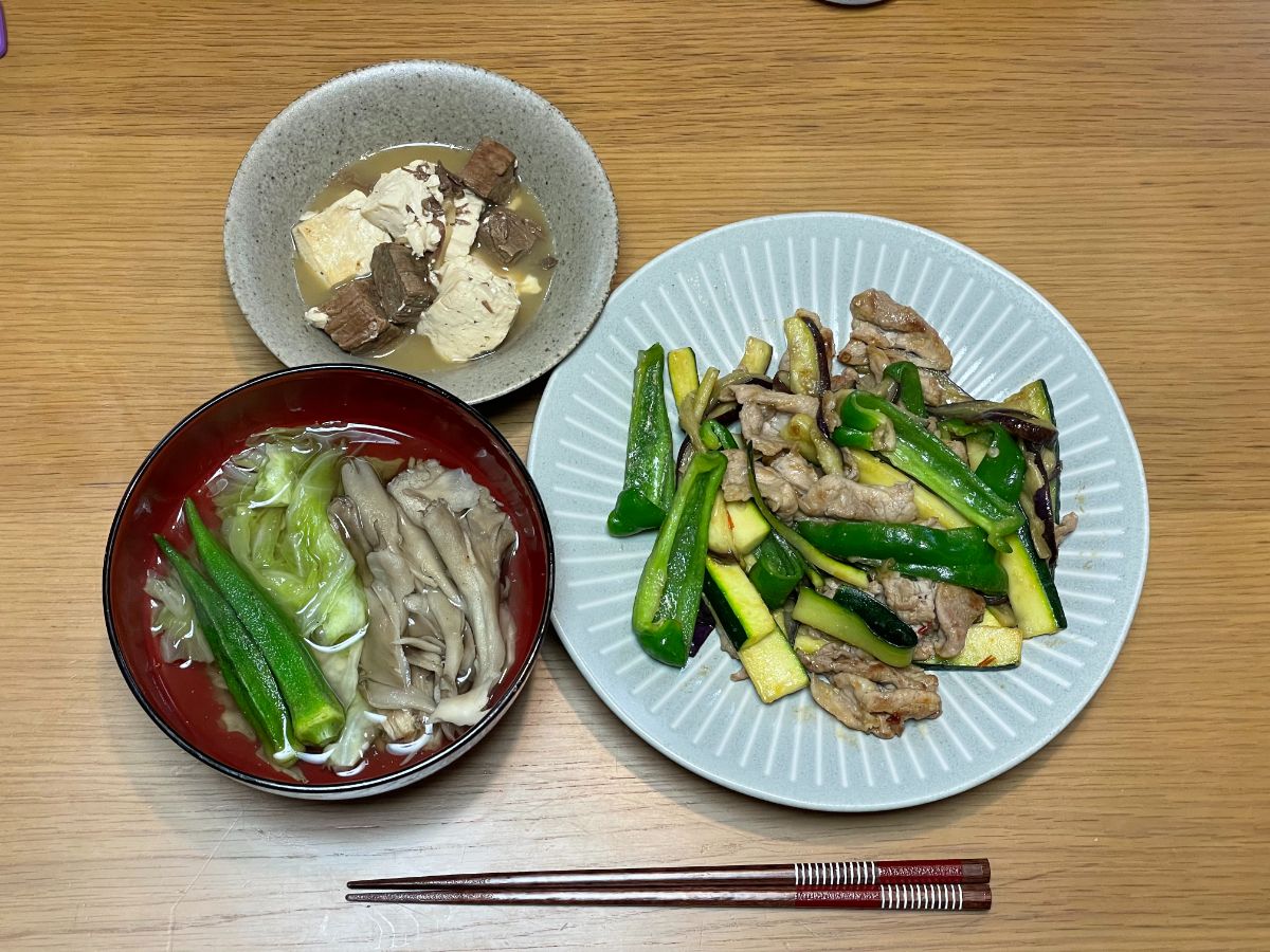 19:30 豆腐冷麺(カツオたたき、なす、おくら、きゅうり、トマト)、サーモンユッケ、鶏むね明太子まき