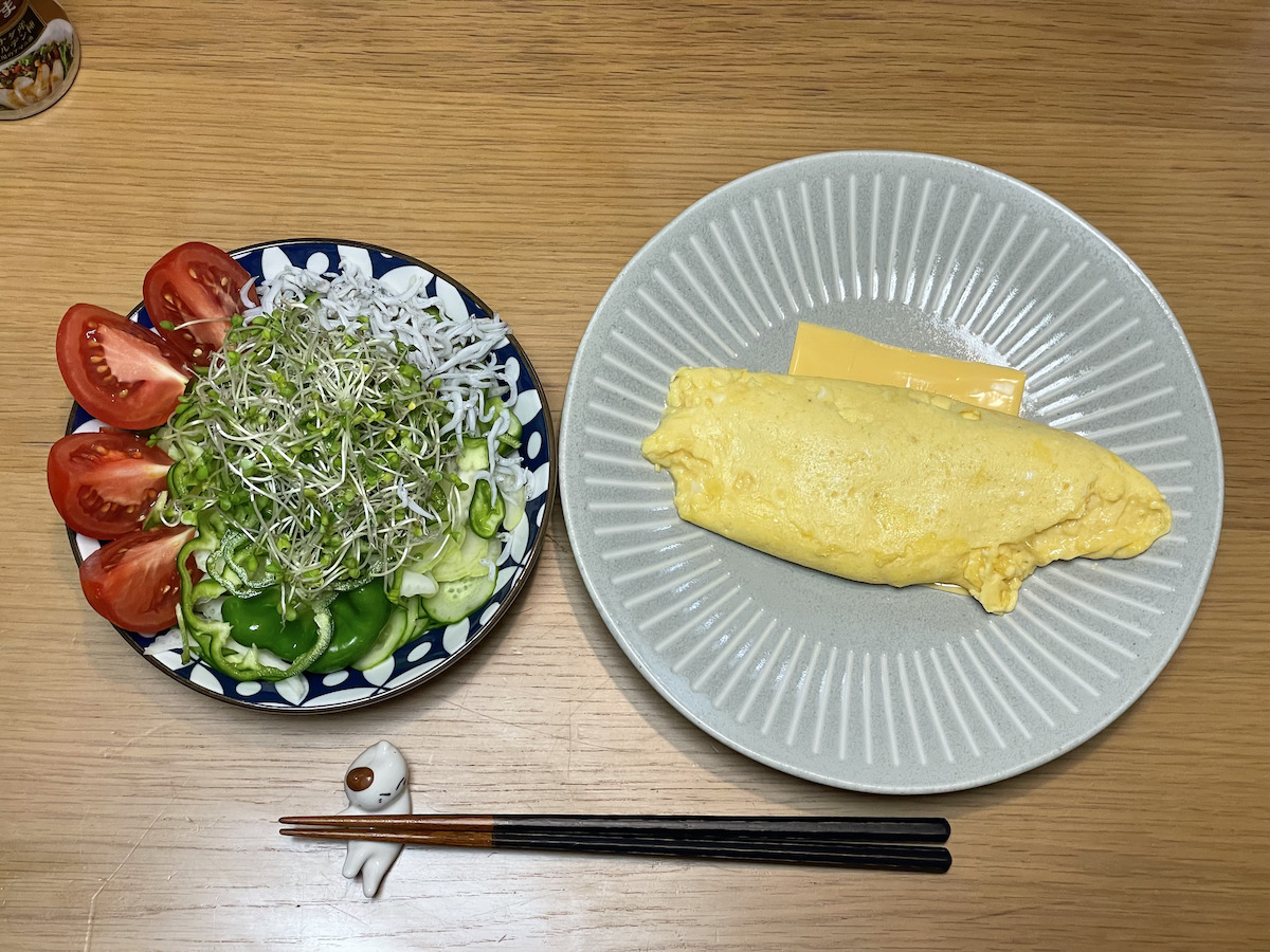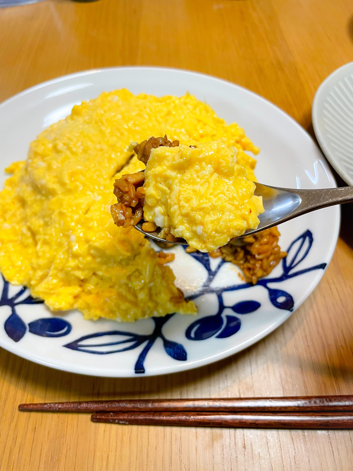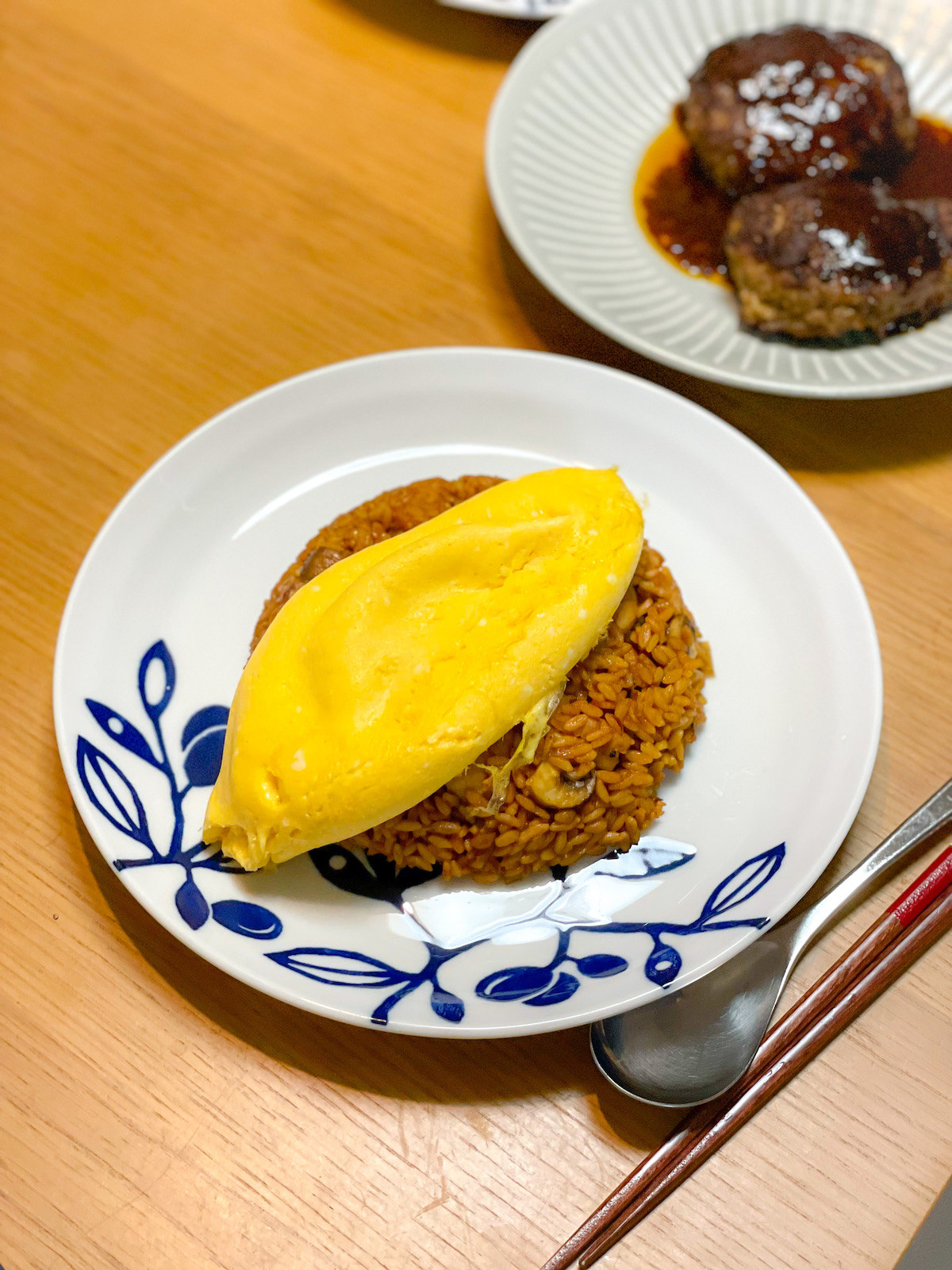 12:00 オムライス(大豆ライス)、ハンバーグ、ポテトサラダ
