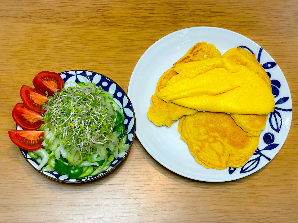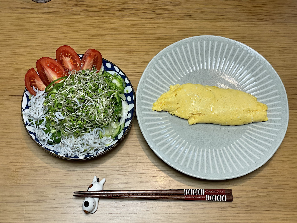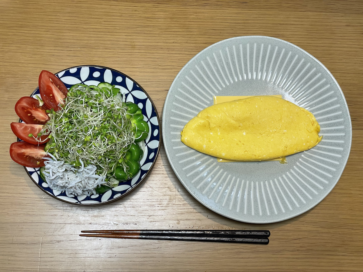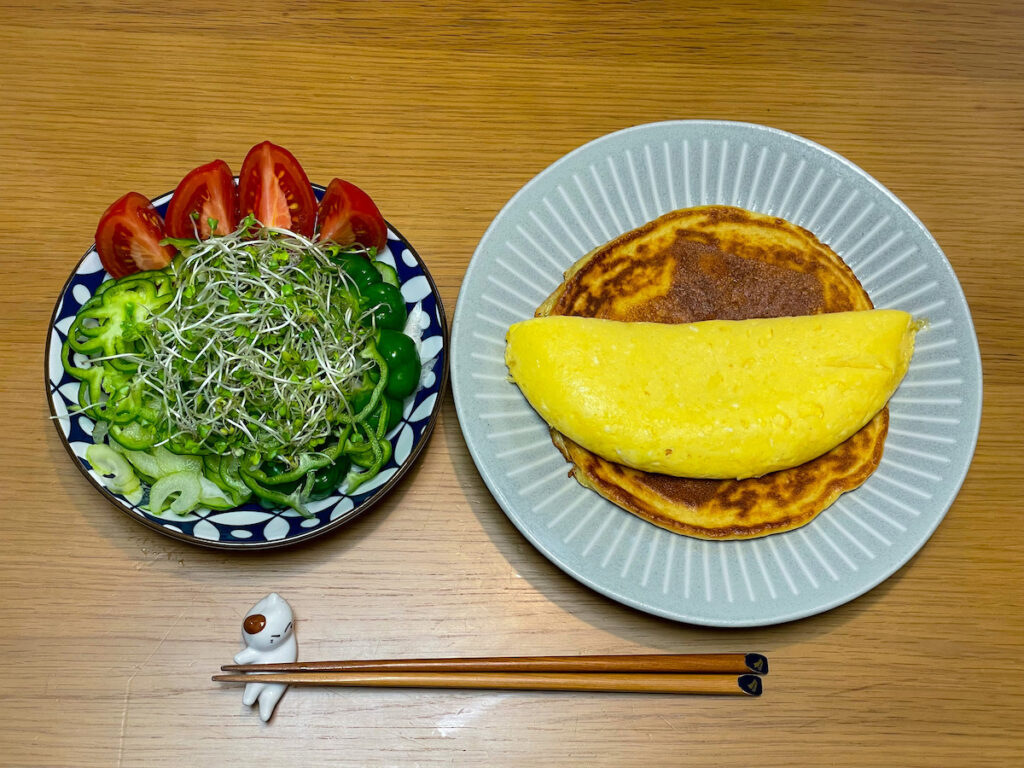 12:00 オムライス(大豆ライス)、ハンバーグ、ポテトサラダ