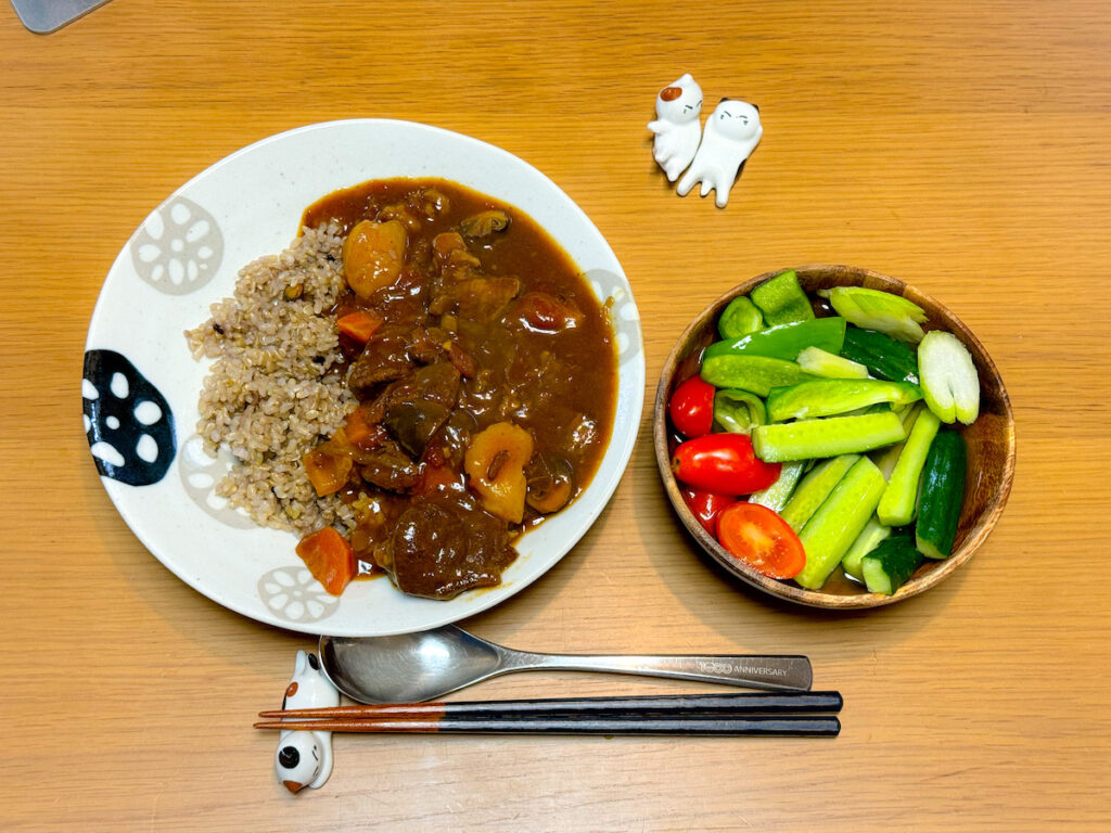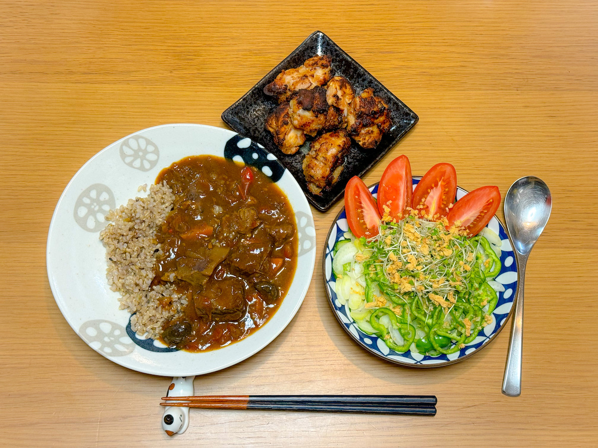 18:00 カレー、ノンフライ唐揚げ、サラダ