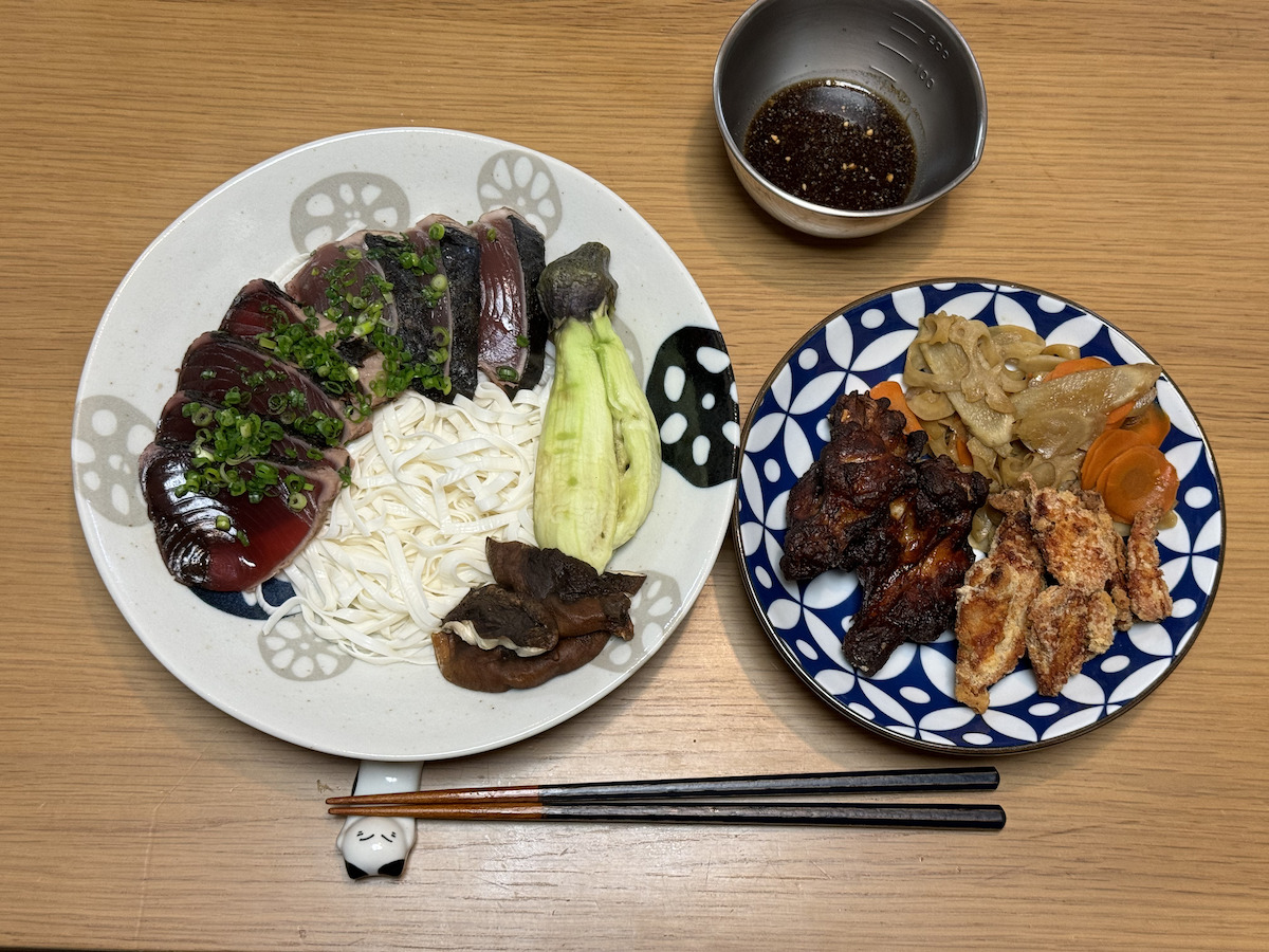 21:00 豆腐麺、カツオたたき、きんぴら、鶏むねノンフライ素揚げ