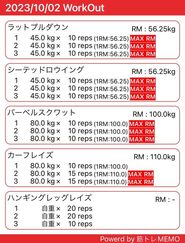 仕事後にジムでトレーニング。足と背中と有酸素運動。