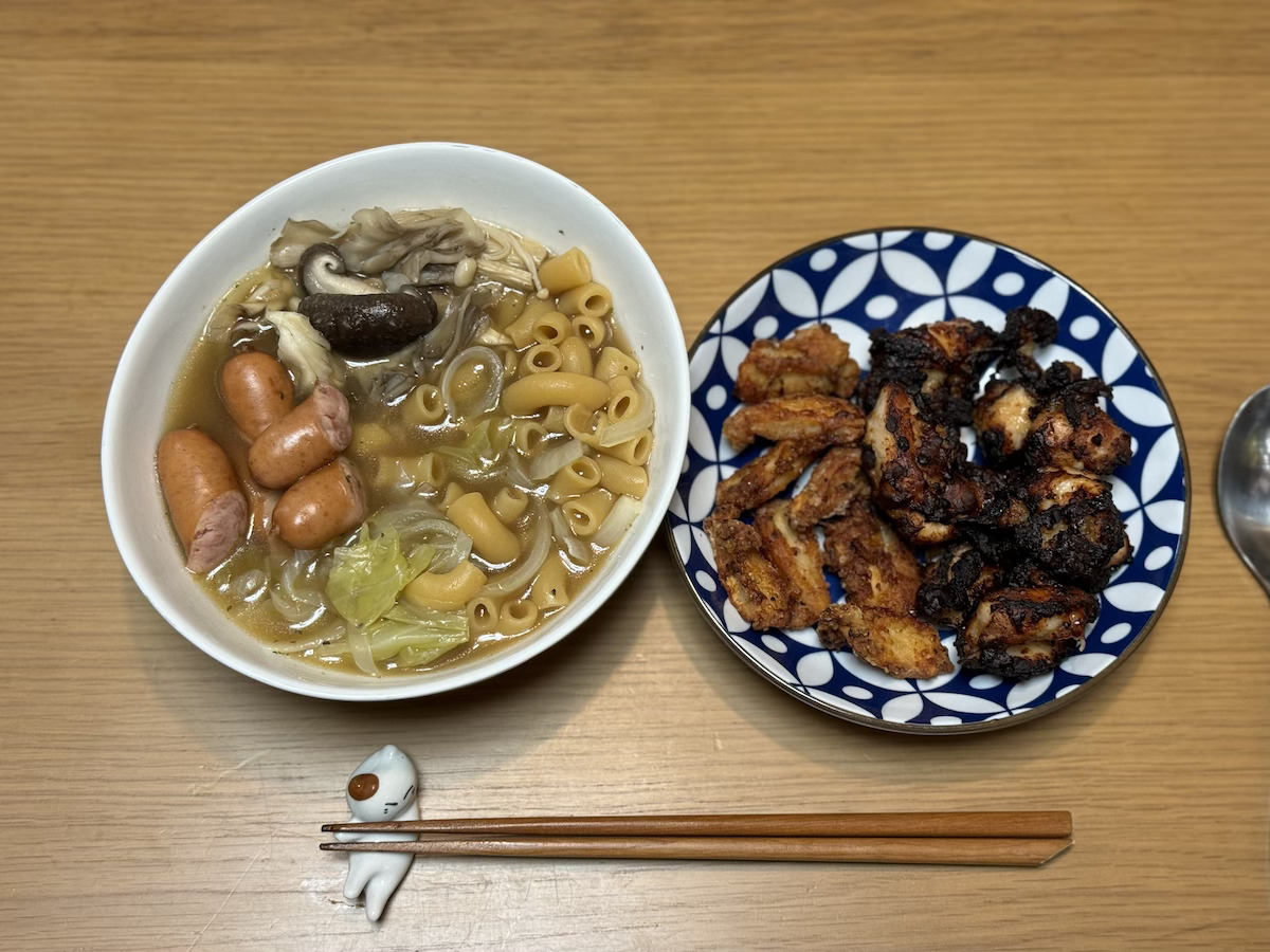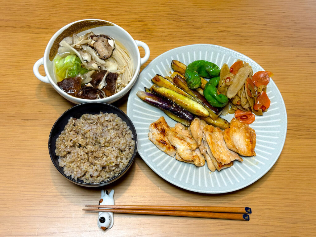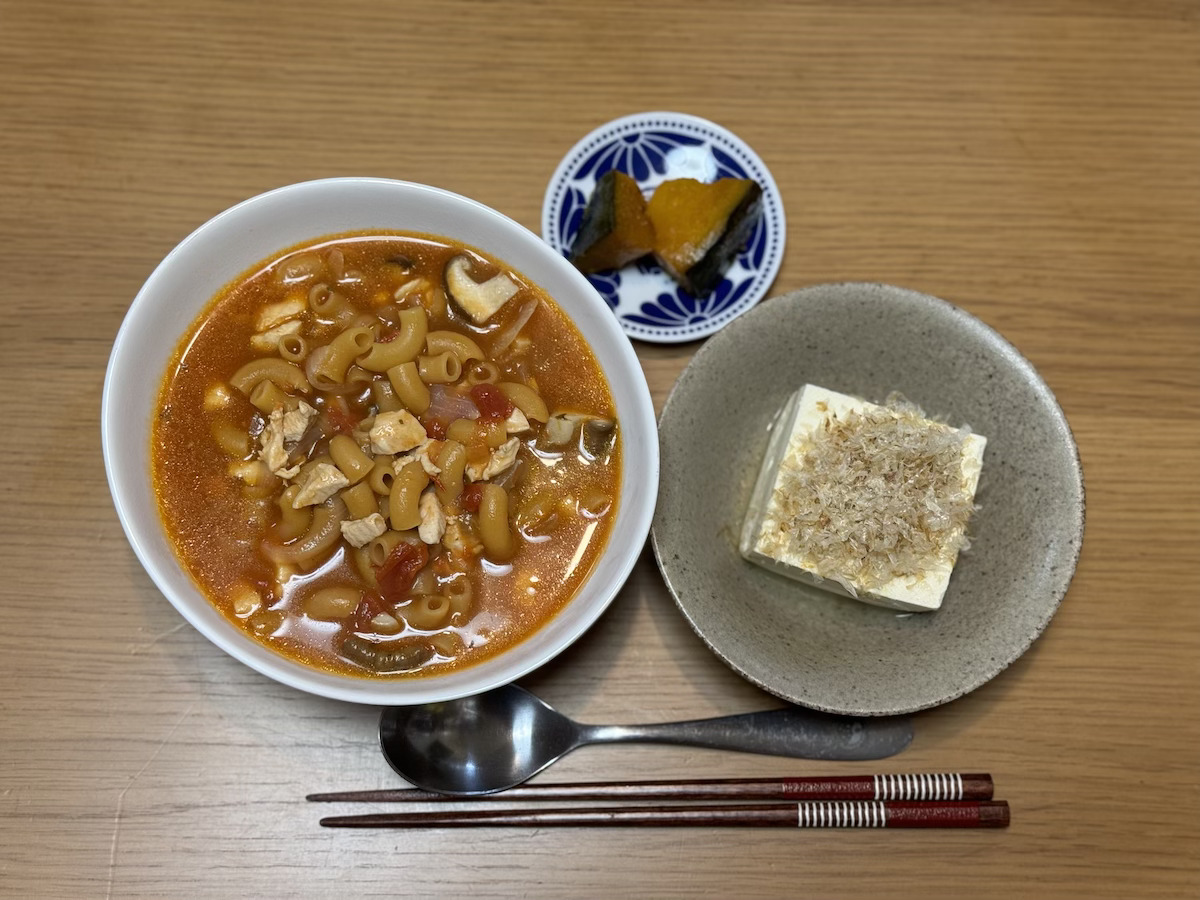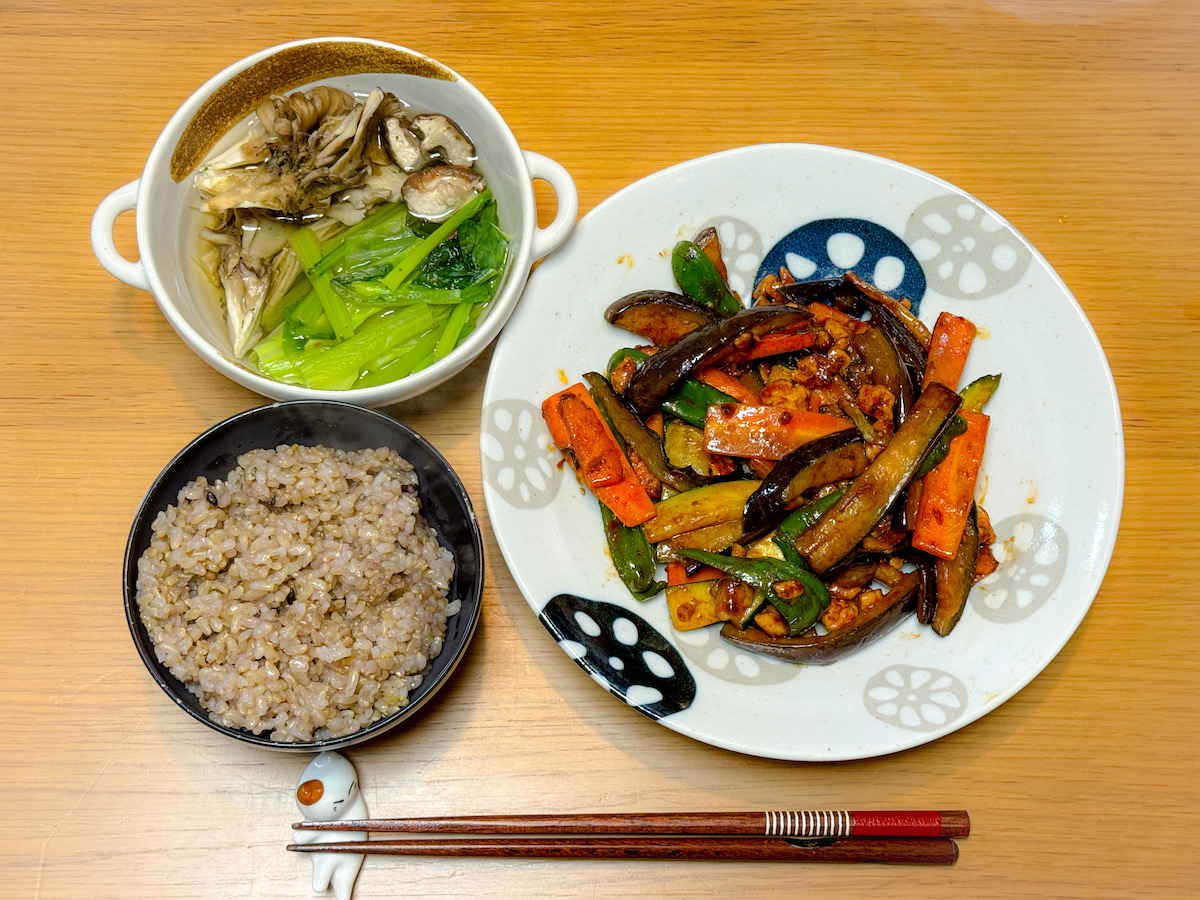 20:00 さわら西京漬、玄米ご飯、大根とキャベツと小松菜のスープ