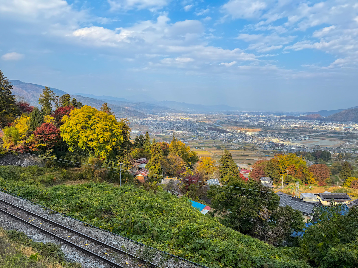 朝から長野の善光寺に紅葉を見に行ったあと、姨捨の棚田を見に行きました。絶景が見える駅として有名な場所で、一度いってみたいと思っていたところ。そのあとは温泉宿で一泊。