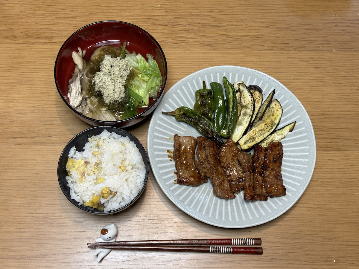 21:00 唐揚げ、ポテトフライ、枝豆、日本酒2合
