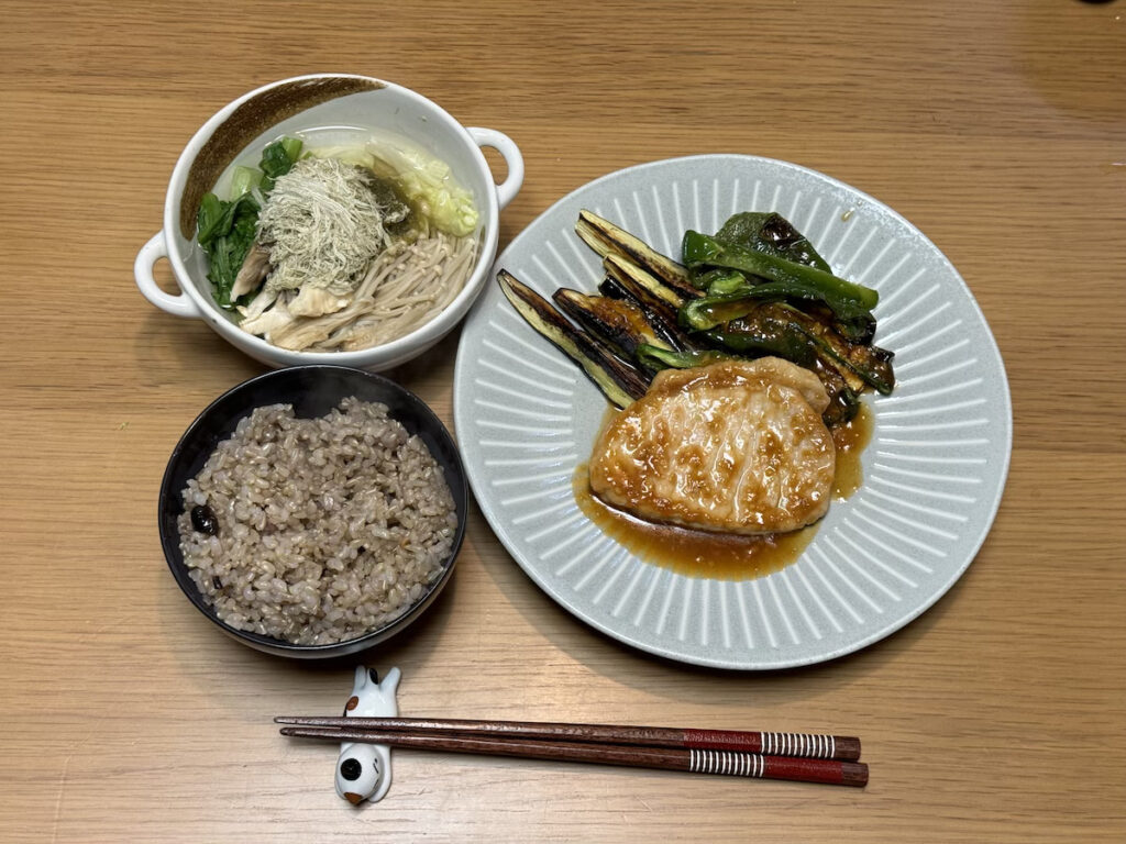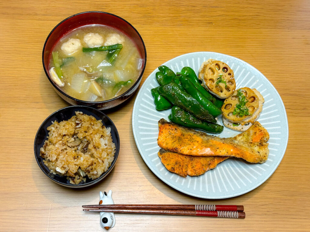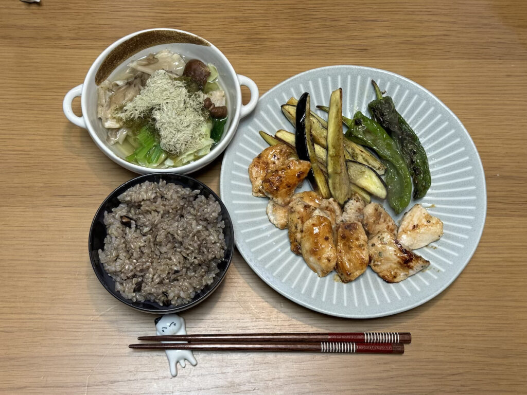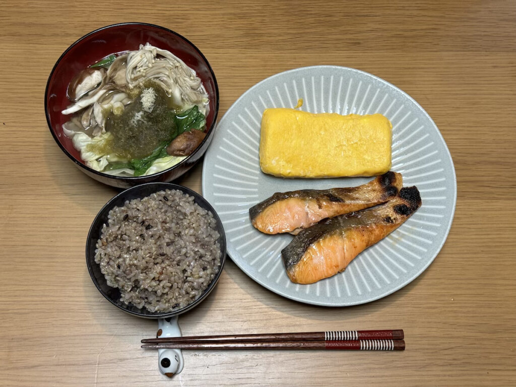 10:45 塩鮭、だし巻き卵、食物繊維汁、玄米ご飯