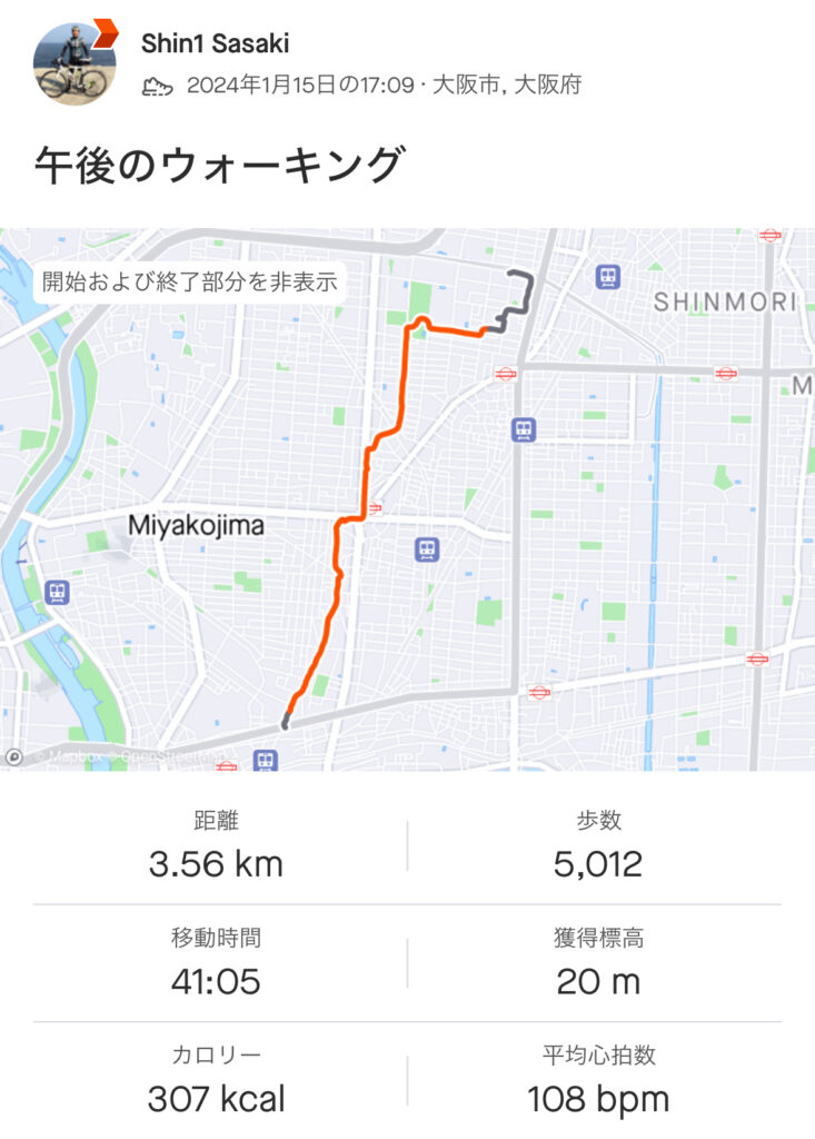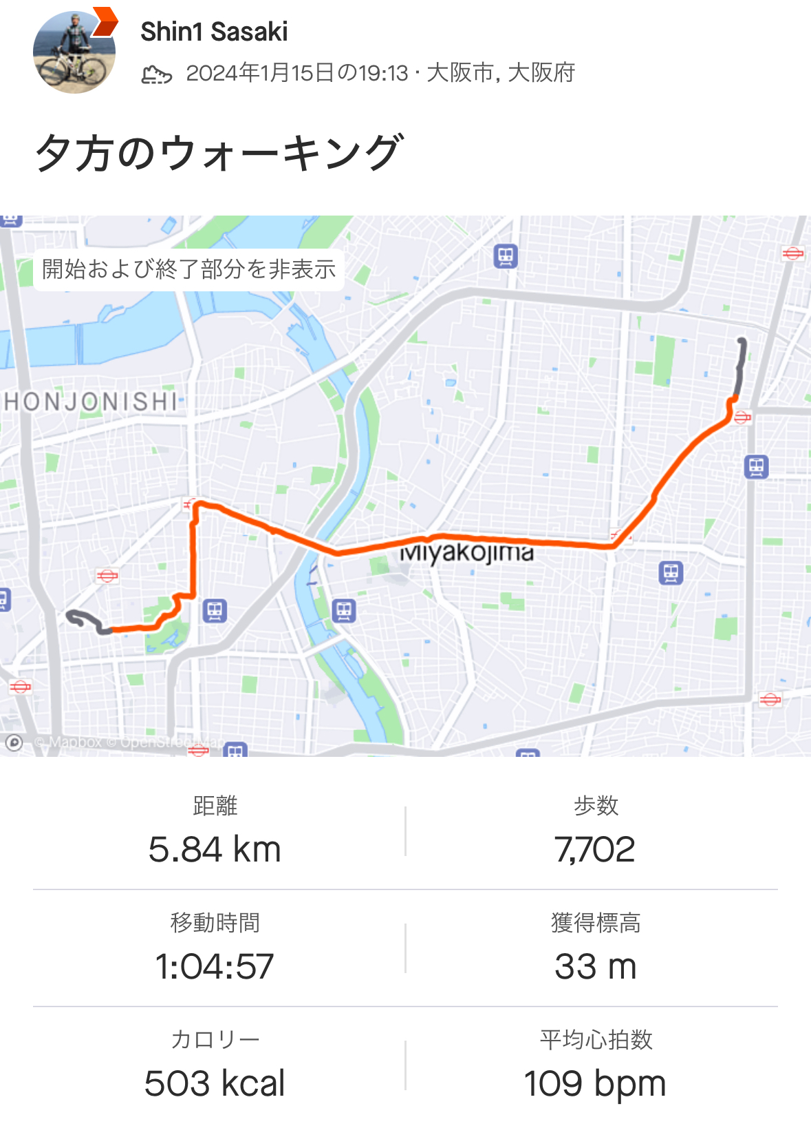 通院と出勤で歩き回りました。ジムで有酸素運動したかったけど仕事が忙しくてなにもできず。
