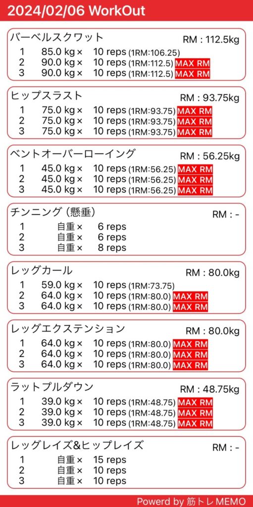 背中と足のトレーニング。脚がしっかり死にました。最近背中あんまりやれてなかったので、しっかりやれて満足。