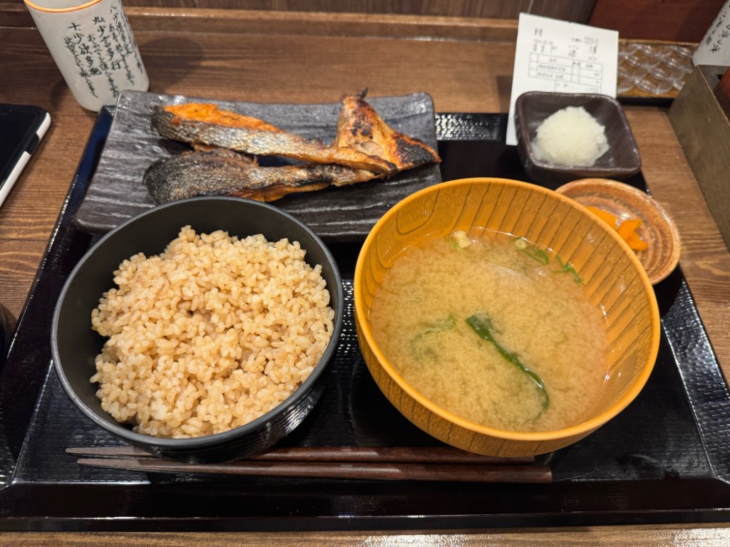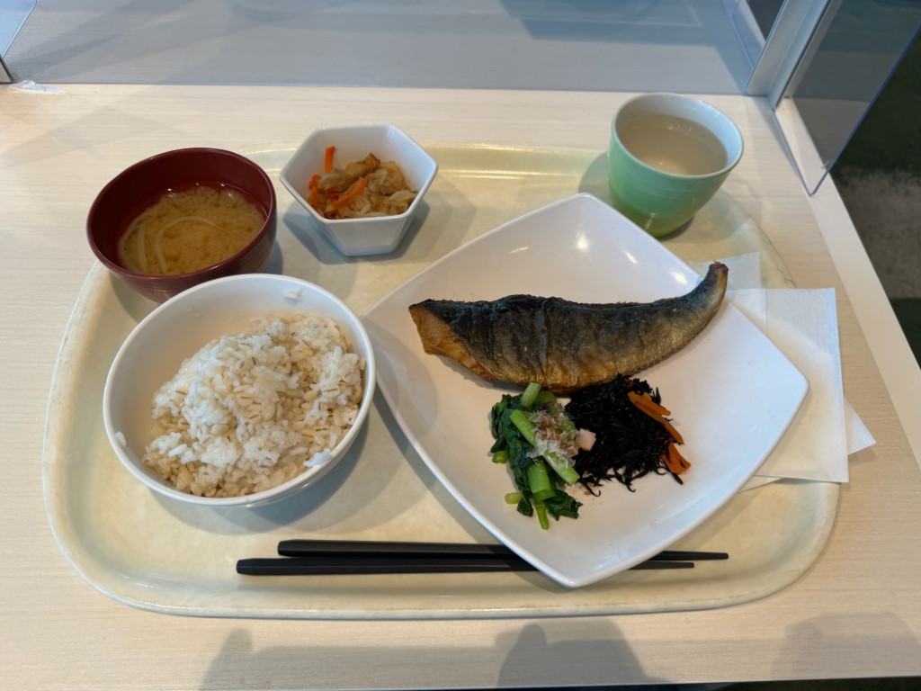 12:30 サバ柚子胡椒焼き定食18:30 銀鮭塩焼き定食23:00 サラダ、もずく