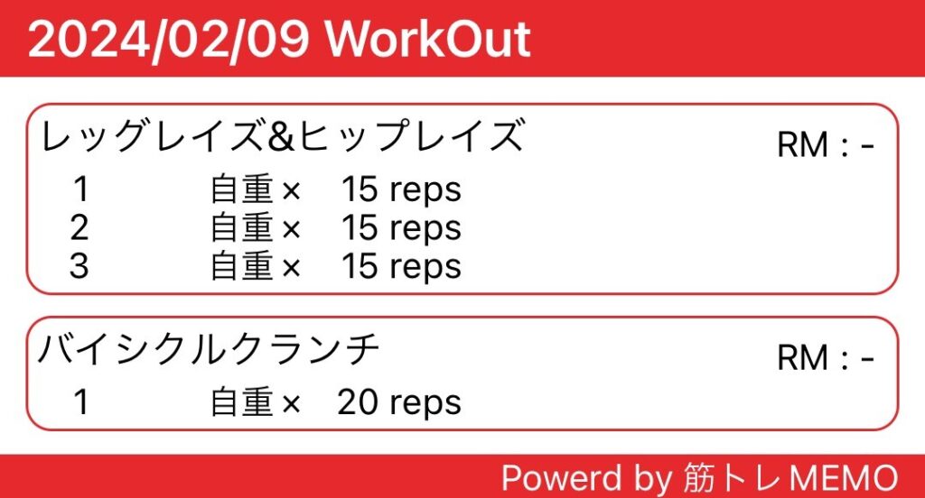 帰宅後に自宅でストレッチと腹筋をやりました。