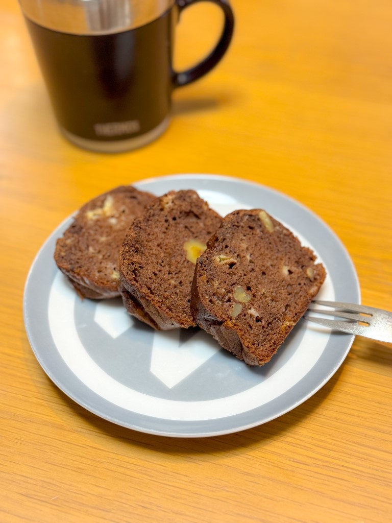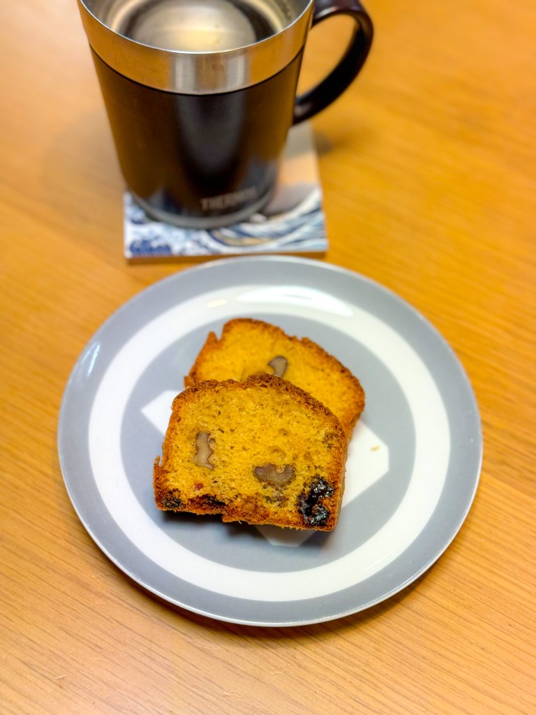 13:30 コーヒー、パウンドケーキ(ドライフルーツとくるみ)