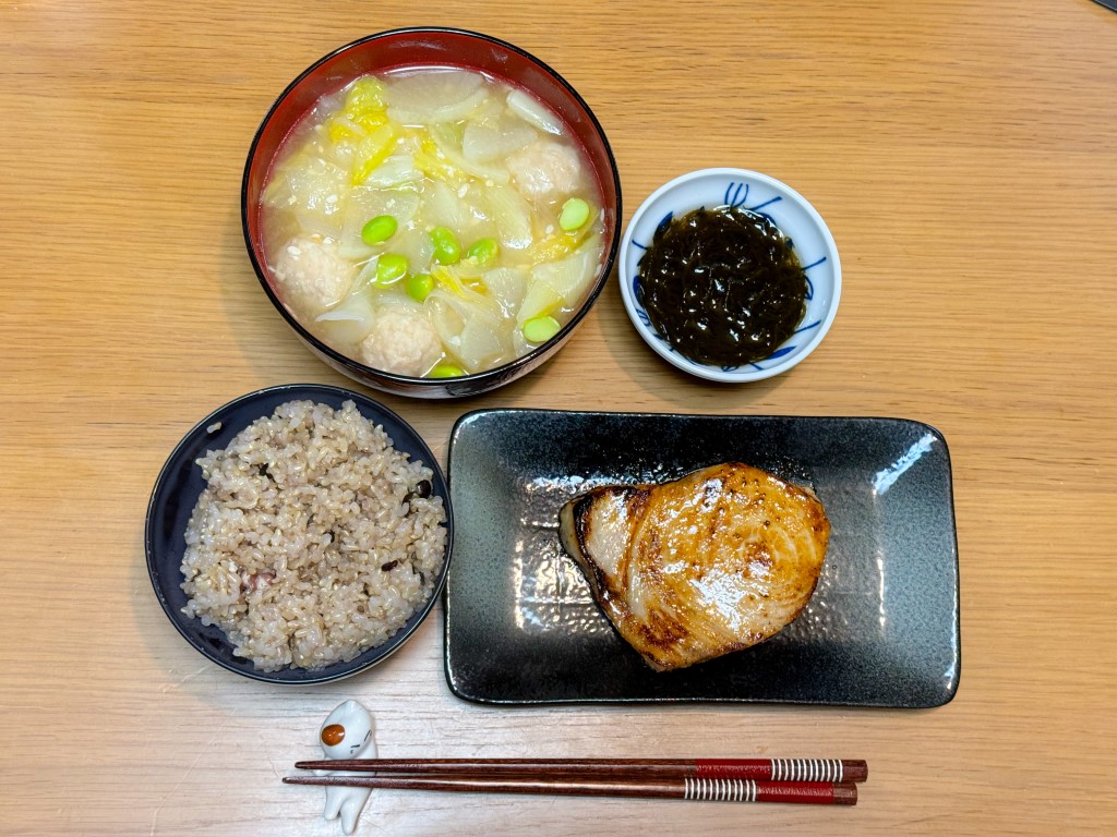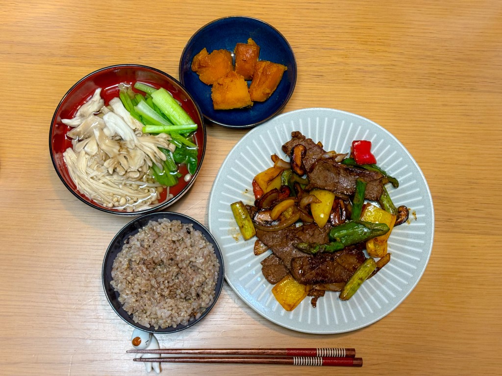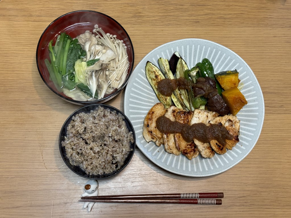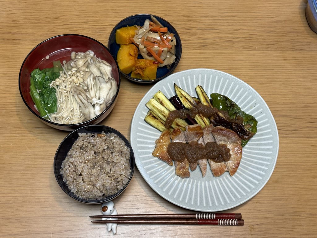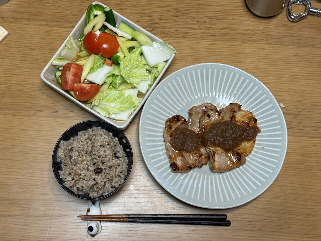 20:30 ポークソテー、ピクルス、玄米ごはん