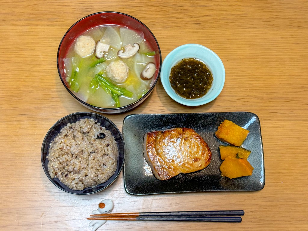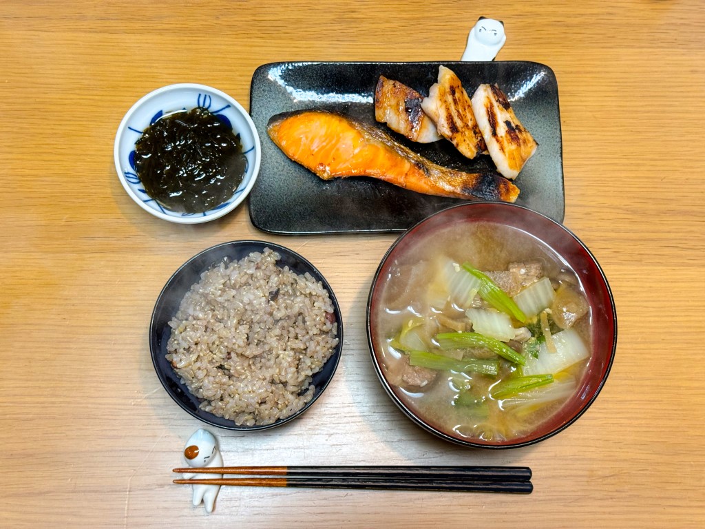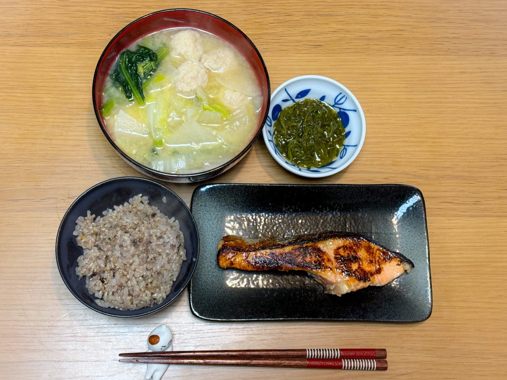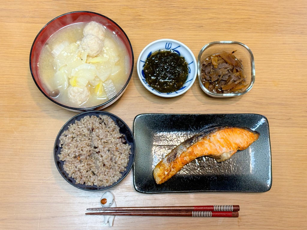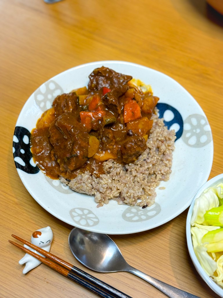 20:30 ポークソテー、ピクルス、玄米ごはん