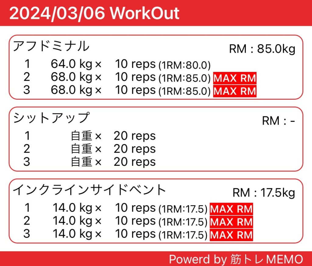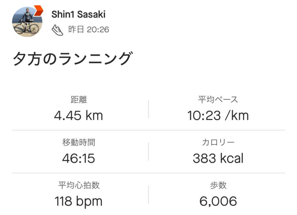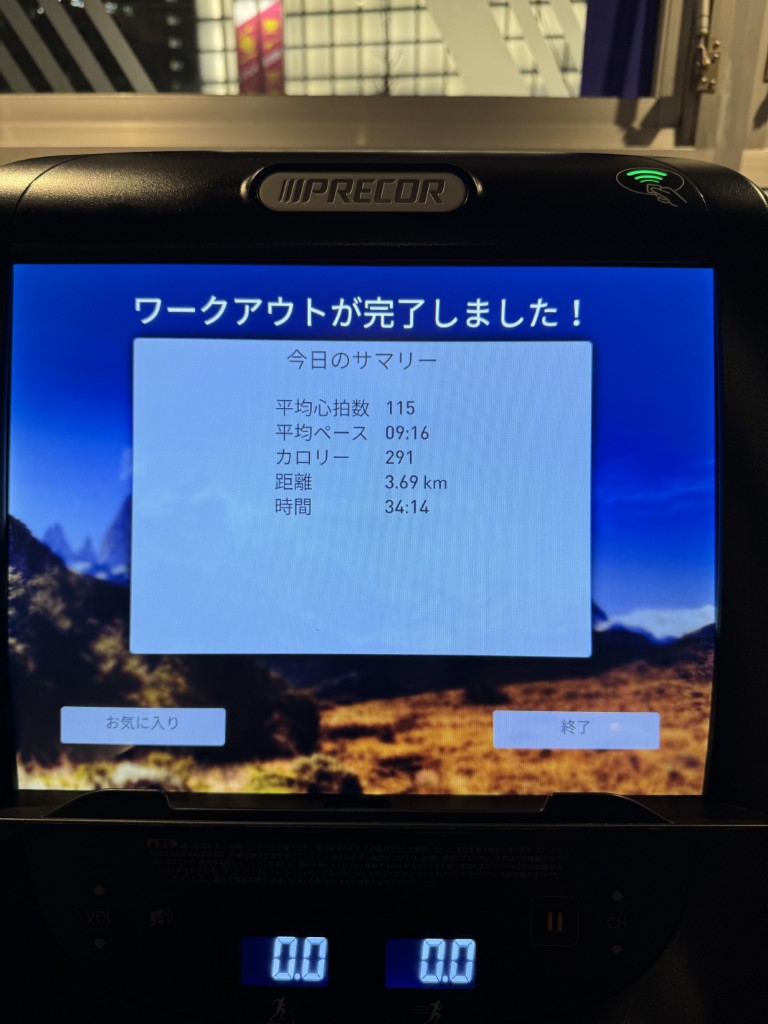 仕事後にジム。腹筋と有酸素運動を中心に。脚の疲れが響いていたので、あまり長時間ランニングできずでした。