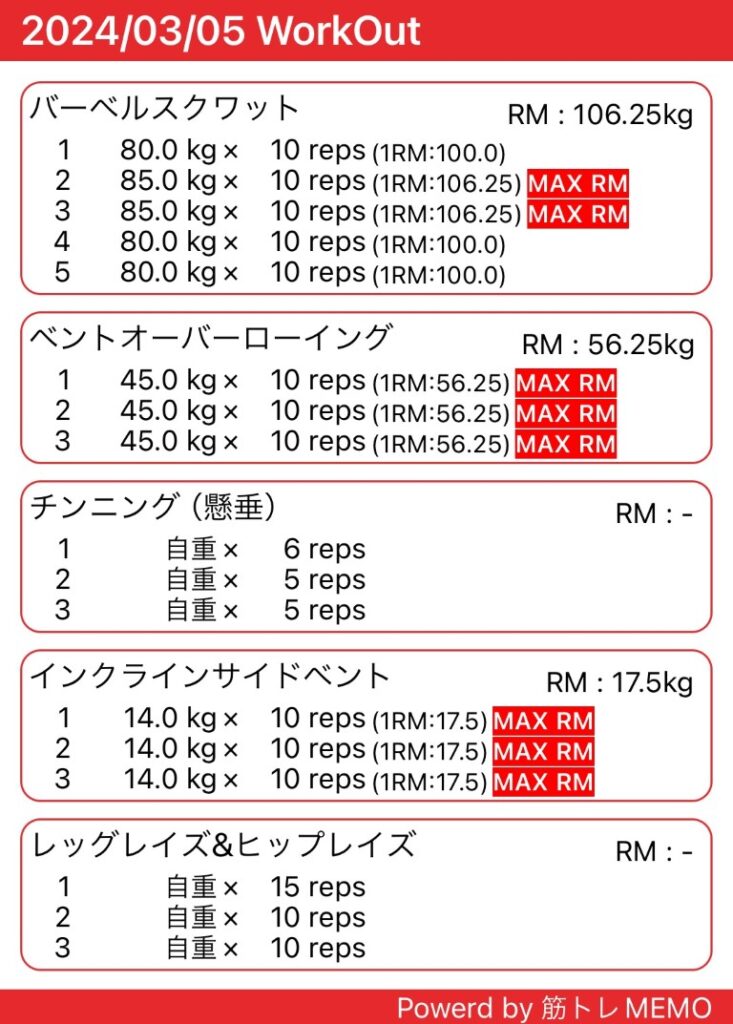 仕事後にジム。下半身トレーニングと有酸素運動。土曜日に久々にデッドリフトやったせいか、裏腿の筋肉痛が続いていて、脚トレはそこそこにしました。