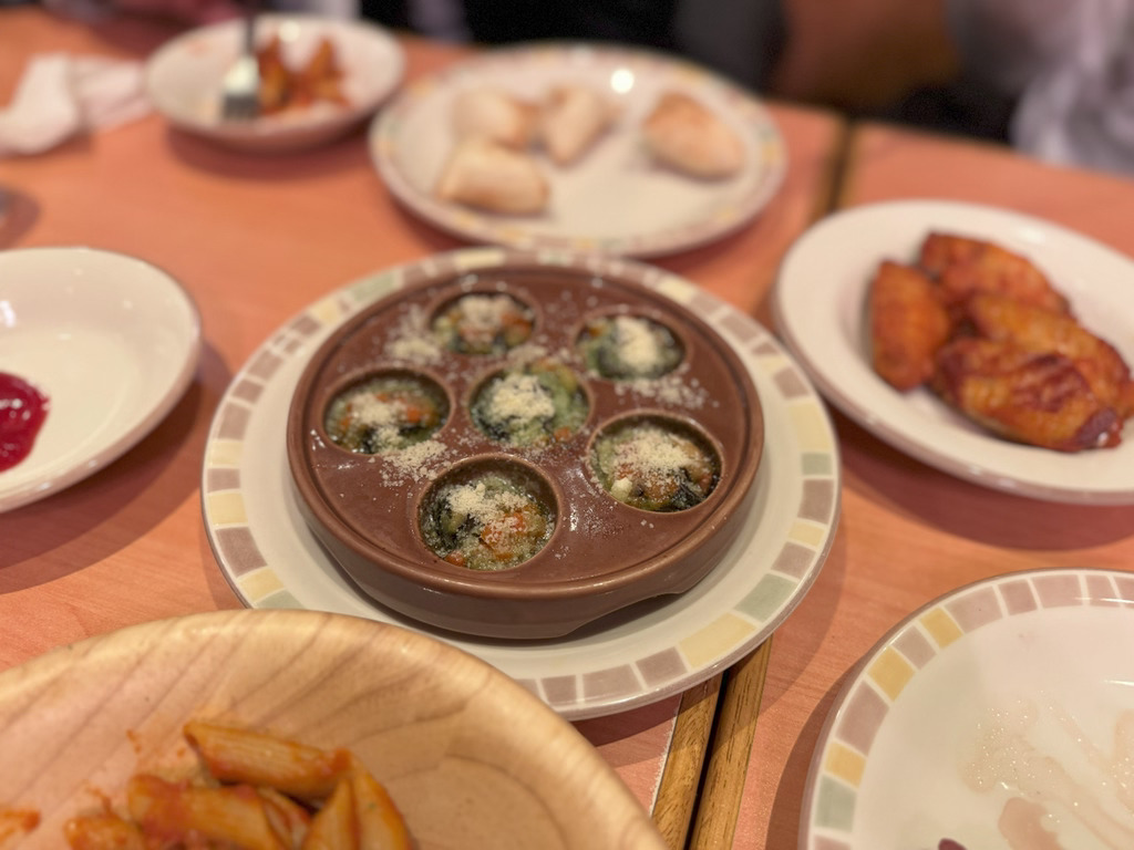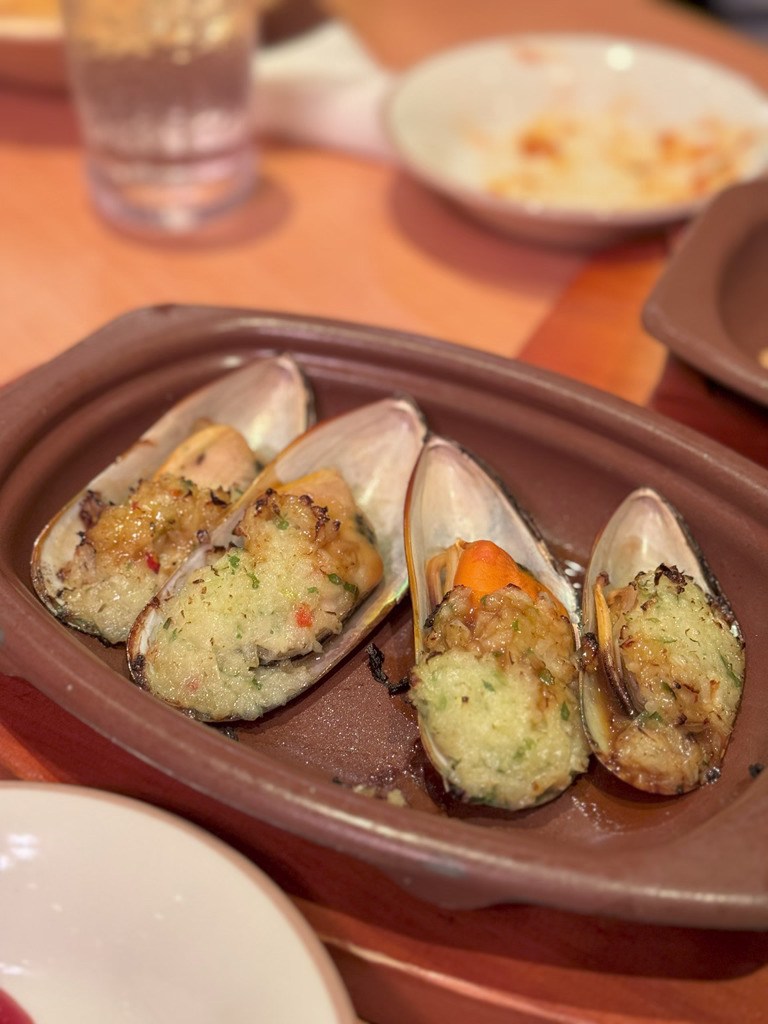 7:55 オムレツ、サラダ、玄米ごはん12:30 鳥の山賊焼き定食、カニクリームコロッケ20:45 サラダ、エスカルゴオーブン焼き、ムール貝のグリル、辛味チキン、フォカッチャ、ミラノドリア、ラム串、ティラミス、ワイン2本